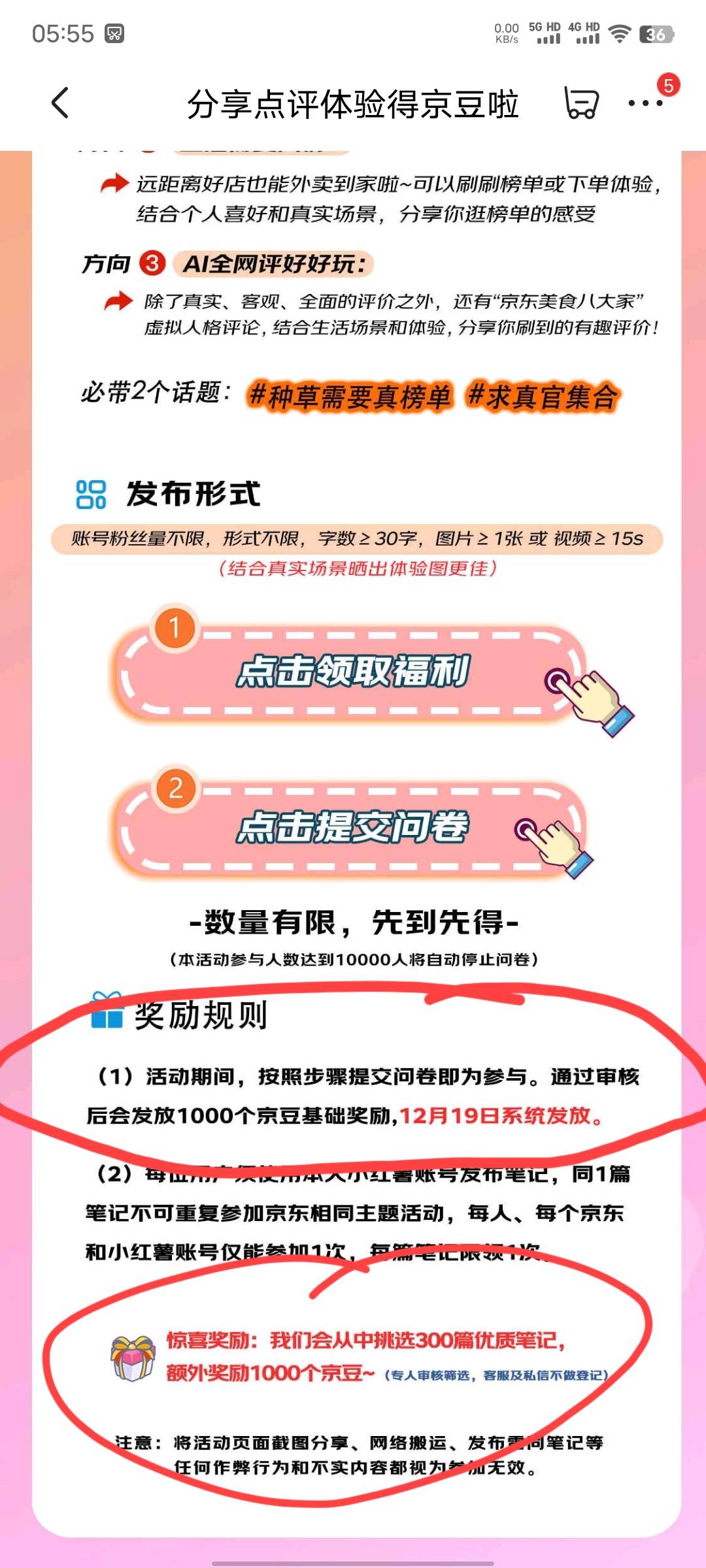 京东分享点评提交问卷大概率1000京豆=10元,按要求小红书写笔记,然后复制链接提交问卷等到账就行
