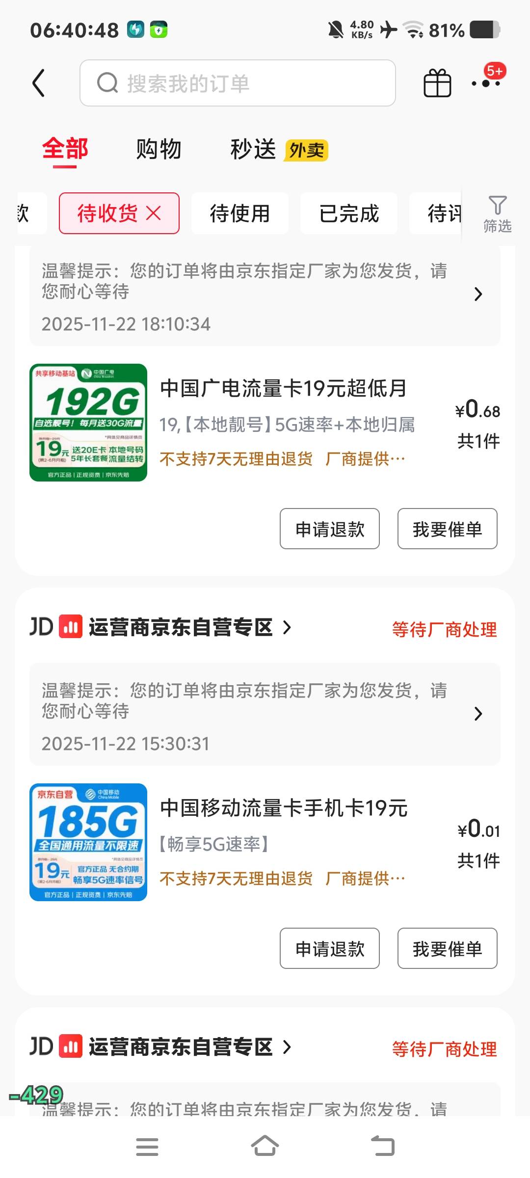 洪水快来 发表于 2025-11-29 07:02 别买广电 他们跟移动高层谈崩了 11点到7点 网速只有几百kb
