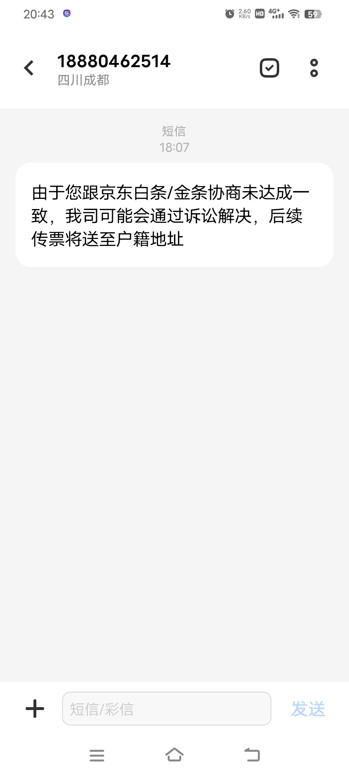 sb京东,两个月前就说起诉了,现在还在发这种sb短信,好像能催得到钱一样