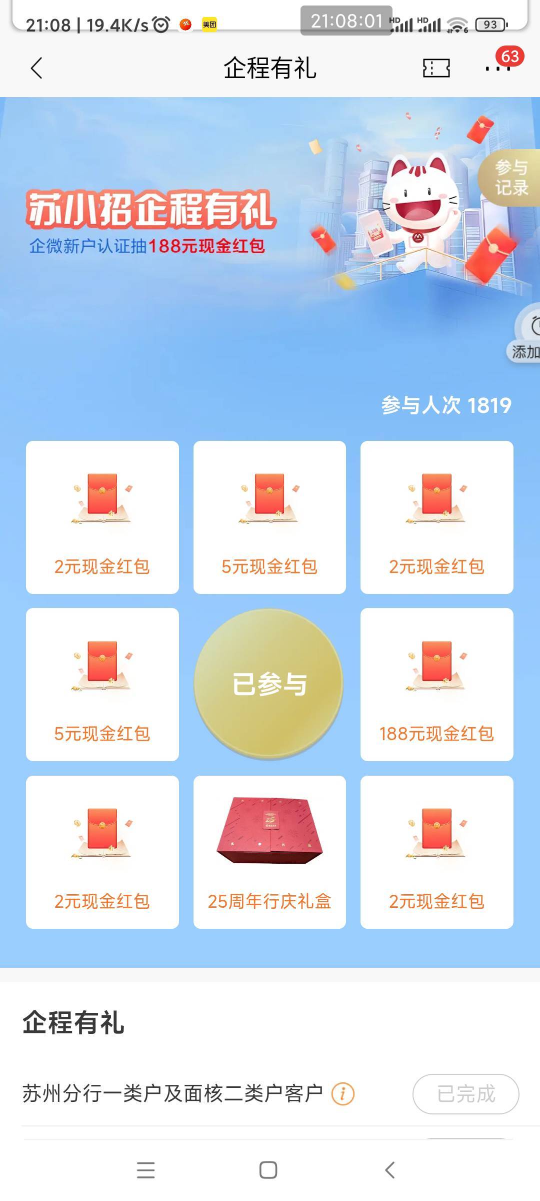 招商银行苏州企微新用户企程有礼活动