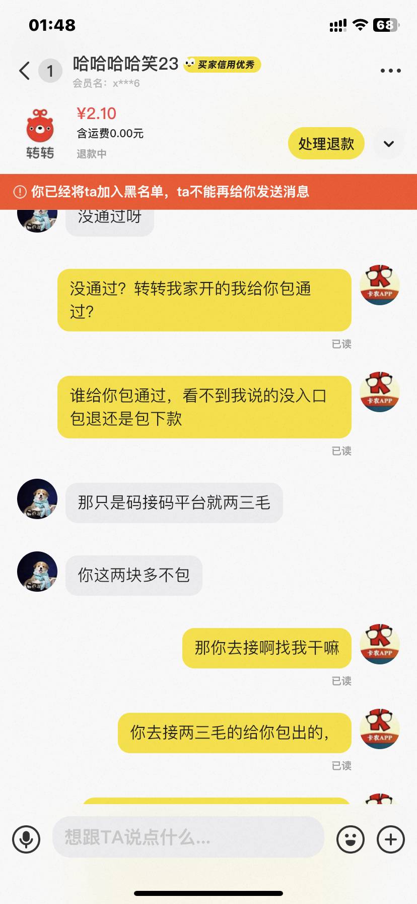 没所谓了 发表于 2025-12-02 02:02 对不起老哥,这两块多是我所有的资产了,转转搞不下来只能申请退款买瓶水喝喝,你快退给我