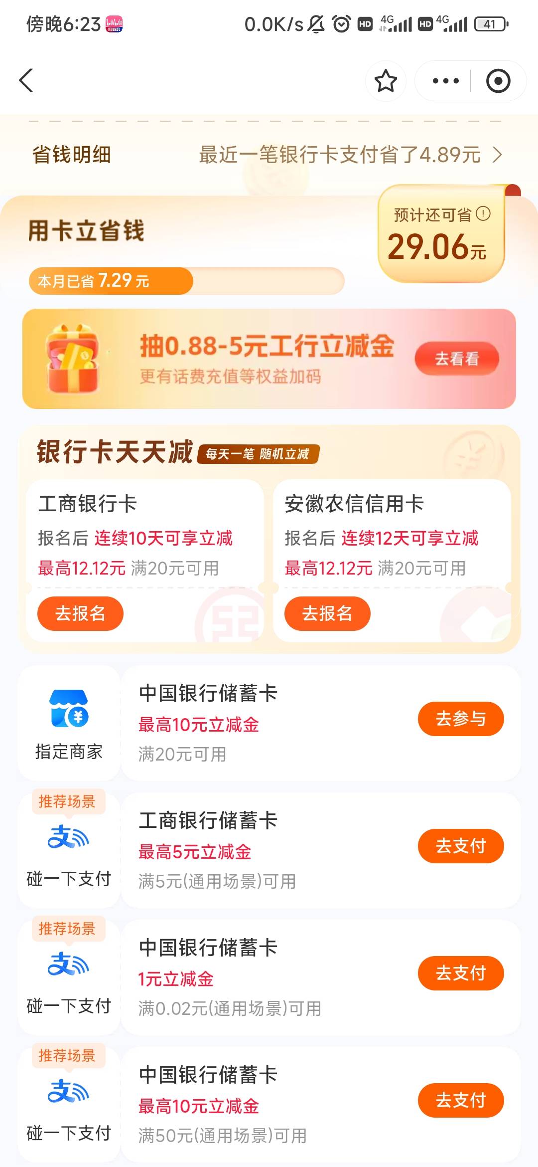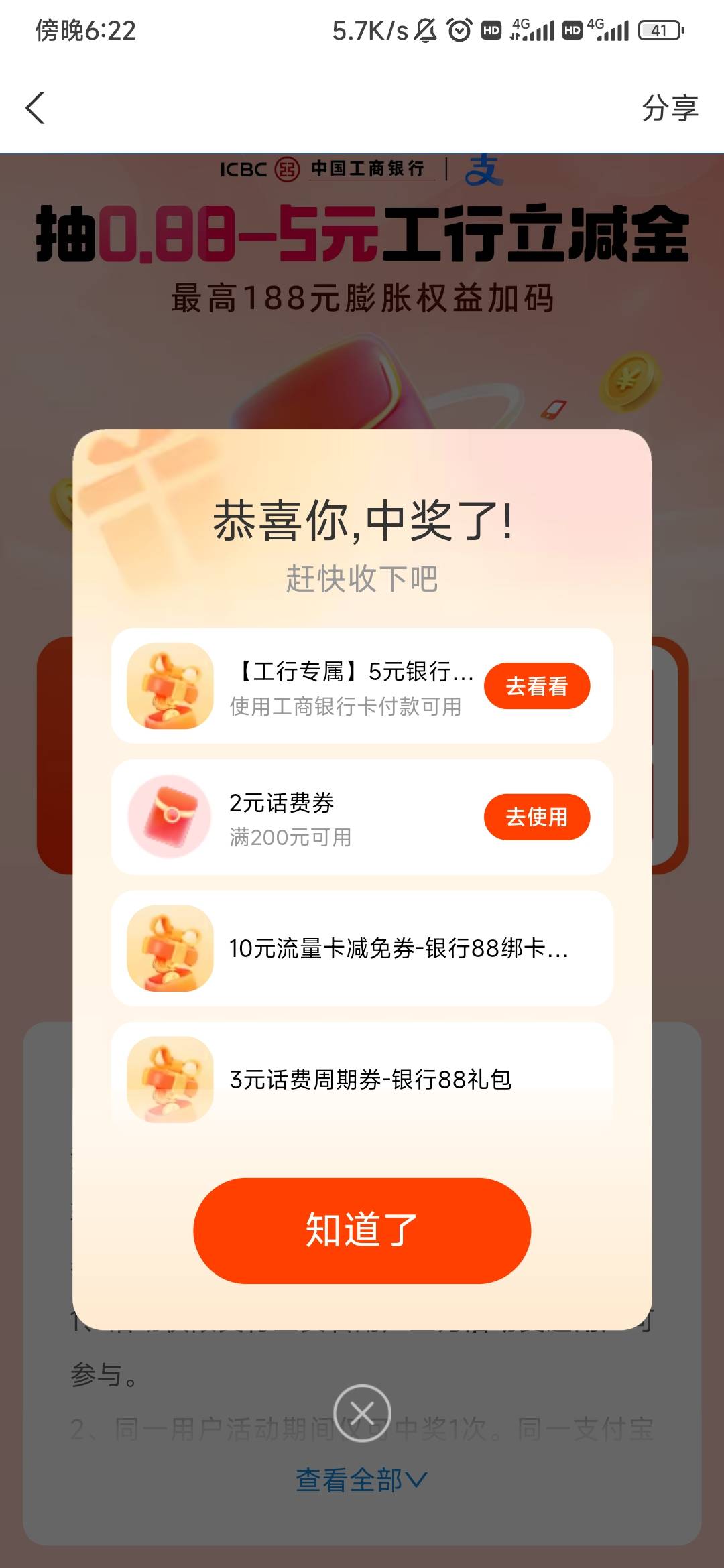 支付宝工行抽0.88-5元工行立减金活动
