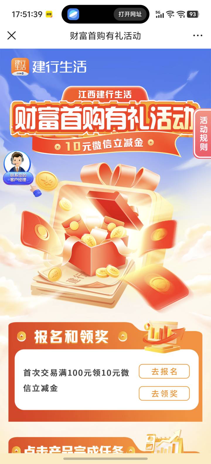 定位江西,报名,建行买龙钱宝1号。买完撤销就能领