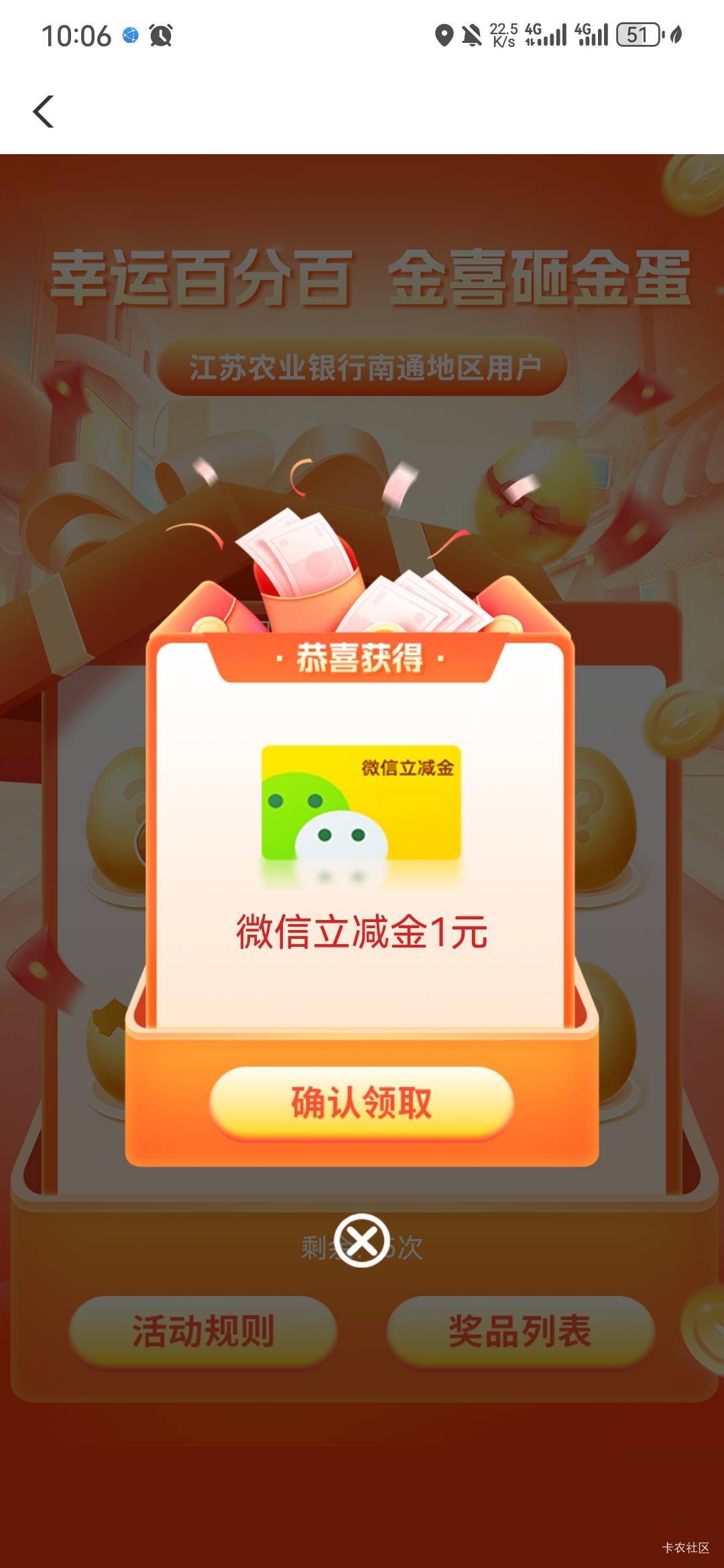 农行南通城市专区金喜砸金蛋活动
