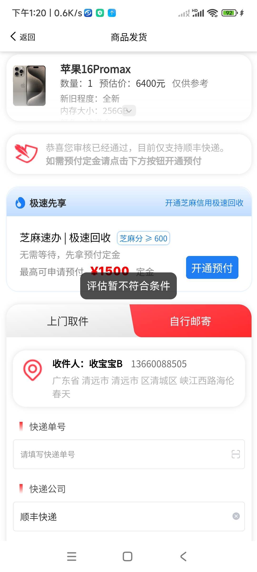 ~浅笑而安@ 发表于 2025-12-05 13:24 为啥我都是先填联系人,然后再点就评估不通过?