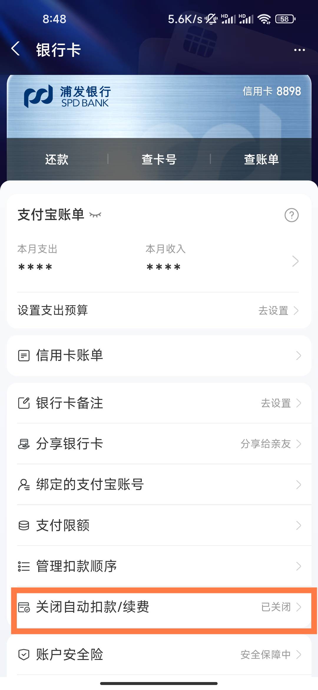 我转转到期了然后快递上面拿手机我说不寄了,后面在转转上该了时间到10,昨天收到短信说我4天了没寄手机说要通过支付宝吧预付款扣回去可我没有钱,然后一直在我信用卡这扣钱,有没有办法不让他继续在我信用卡这扣钱啊