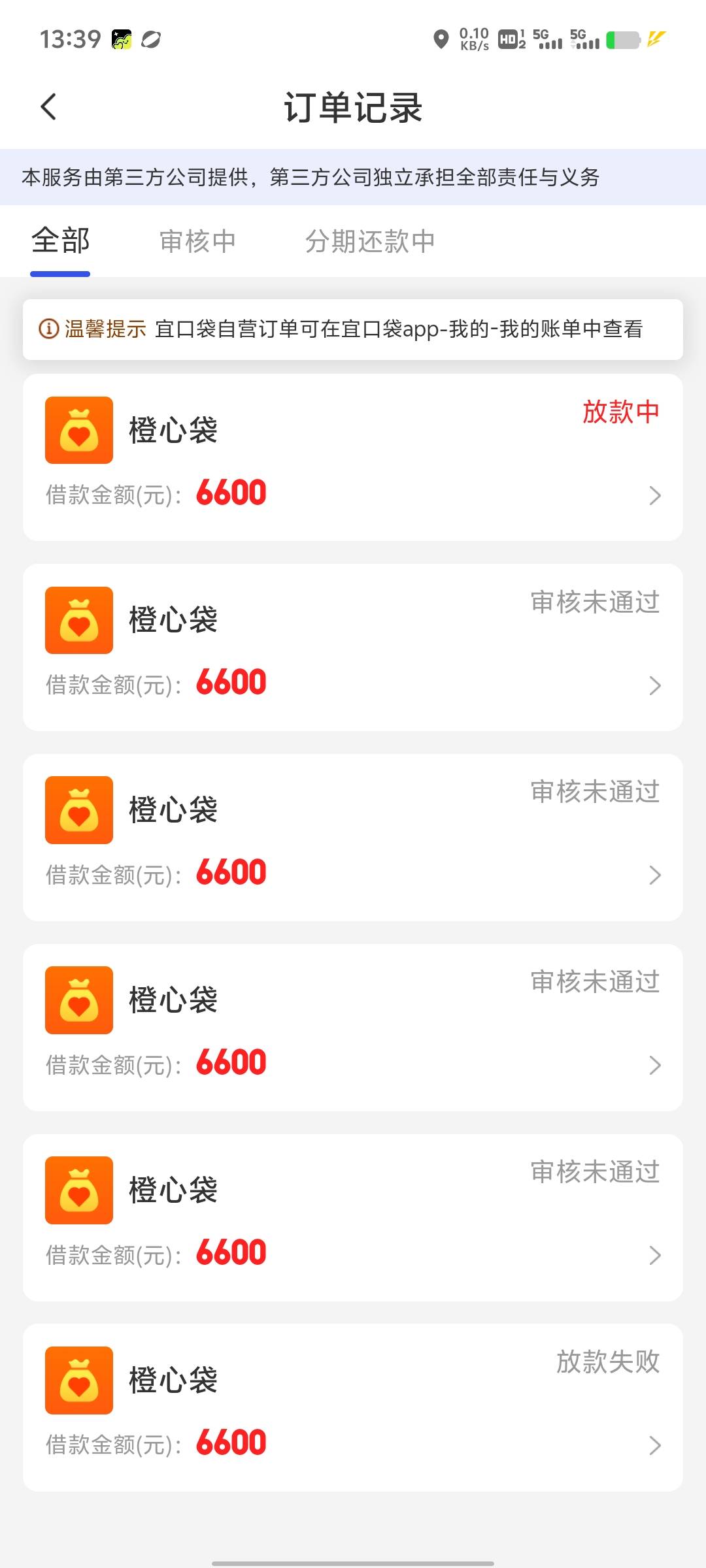 我是在橙心贷app上点的 说我有逾期 不让再次申请