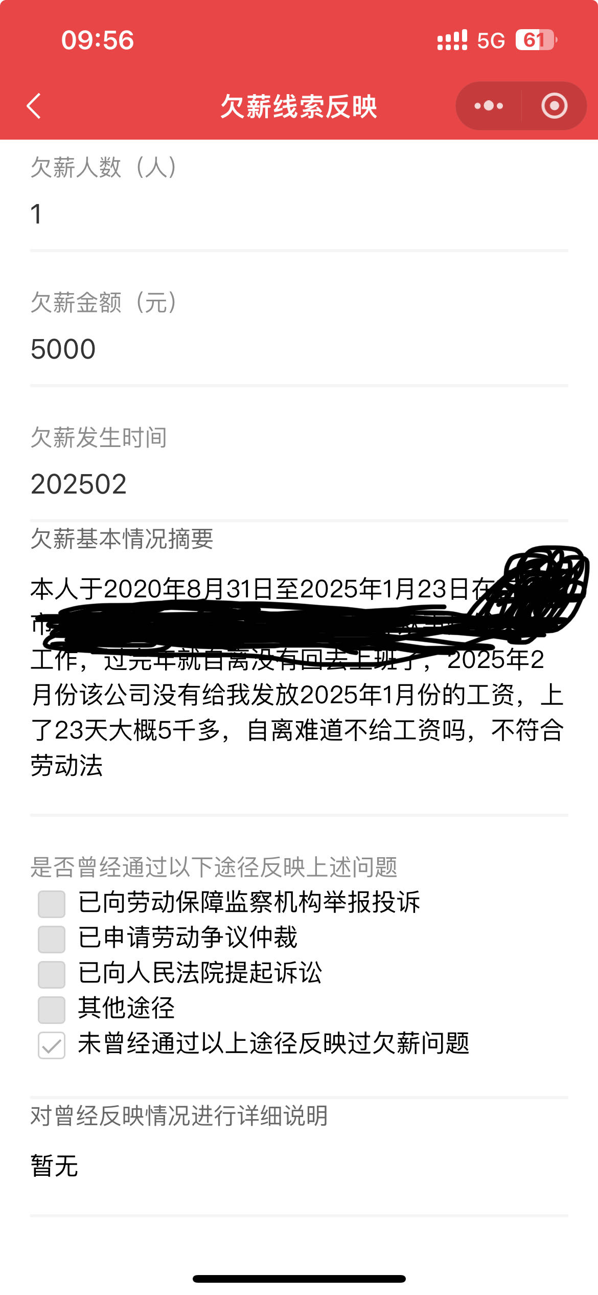 关于自离老哥们有没有要回工资的,我今年过年2月份自离没回原来厂上班,现在过了10个多月了,想着举报一下有没有作用,这个公司背景深关系大,我一个小小人物肯定干不过大公司,搞不好反咬一口,这个公司自离都是搞不回工资的,我在微信小程序举报一下看看有没有希望