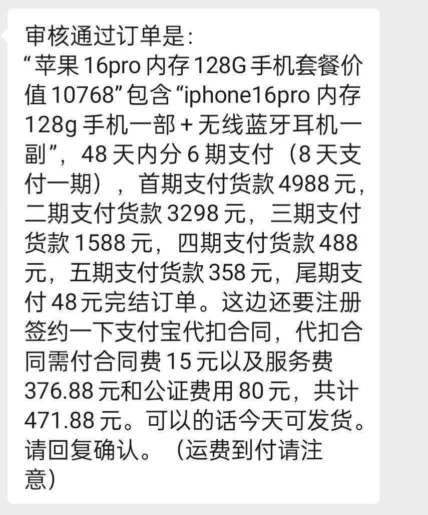 客服加我给我一个链接,然后是叫金虎商城,这个手机10000多,他们回收5000,要先钱,但是这个客服说给我申请一下,给我垫付签约费,到时候回款扣除,但是下单收货的手机号码填写他们给的号码,大哥老哥这是什么T路?