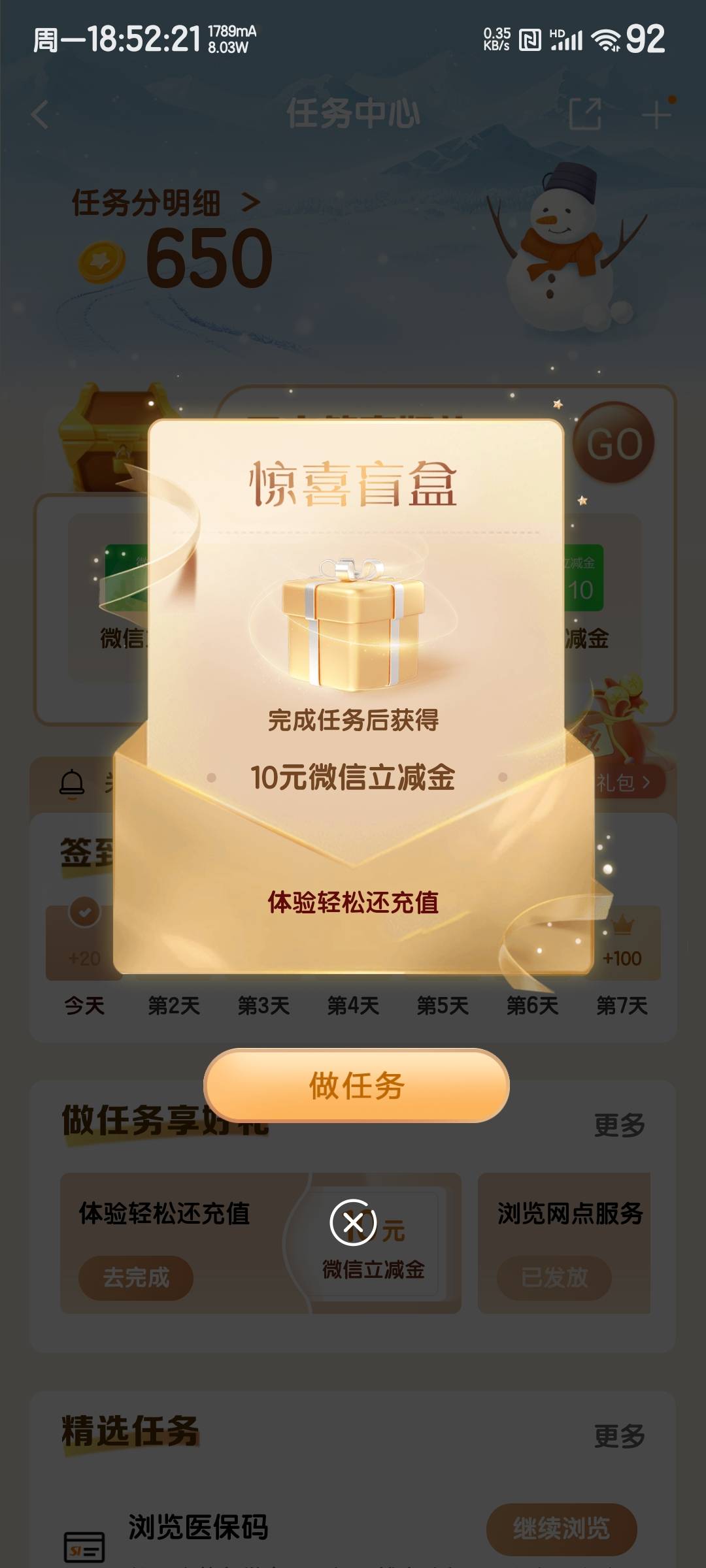 建行任务中心体验轻松还10立减金 进去弹出任务 进去买100基金,添加还贷其他储蓄卡10