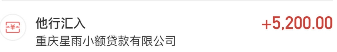 星图的周末下了5200,资方是星雨小贷。