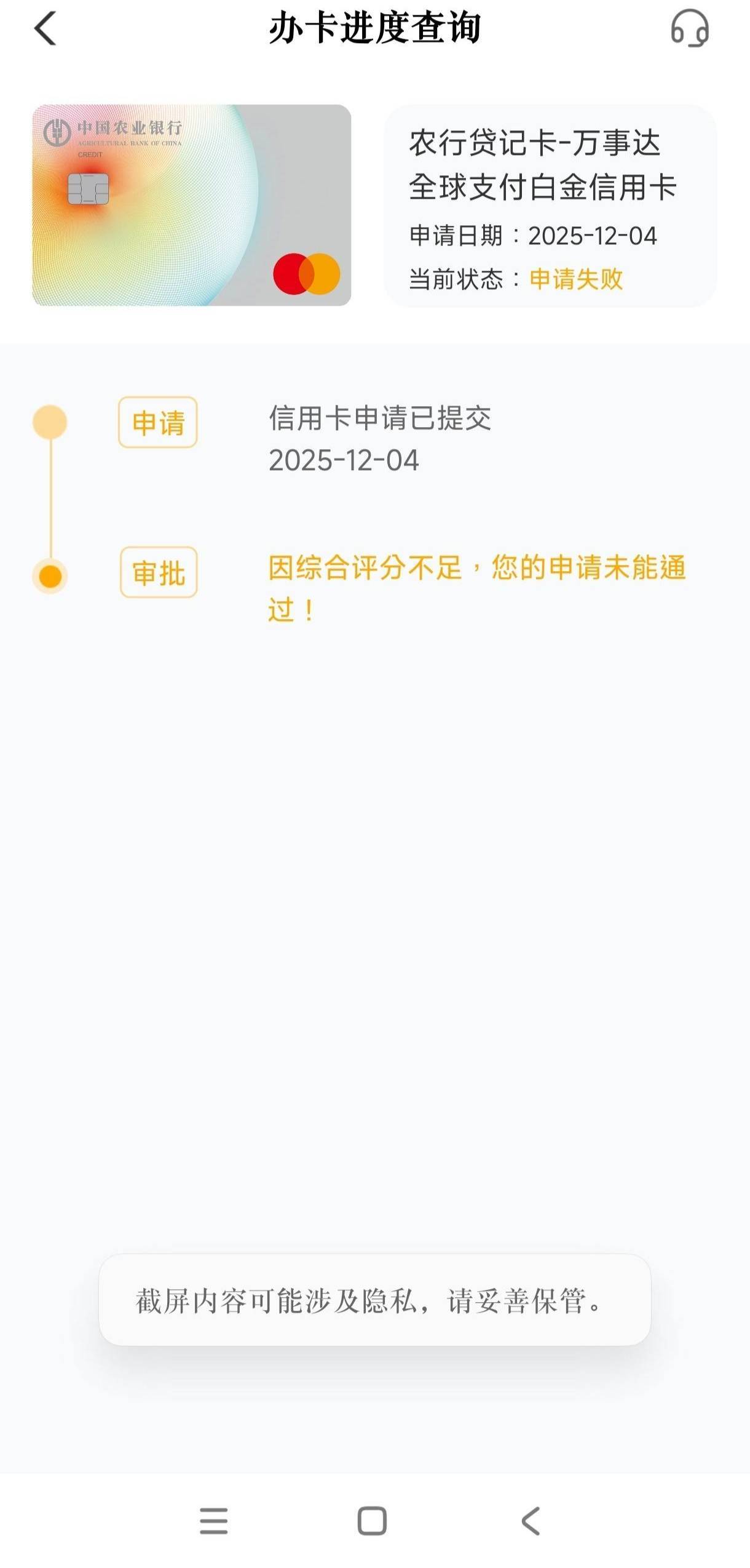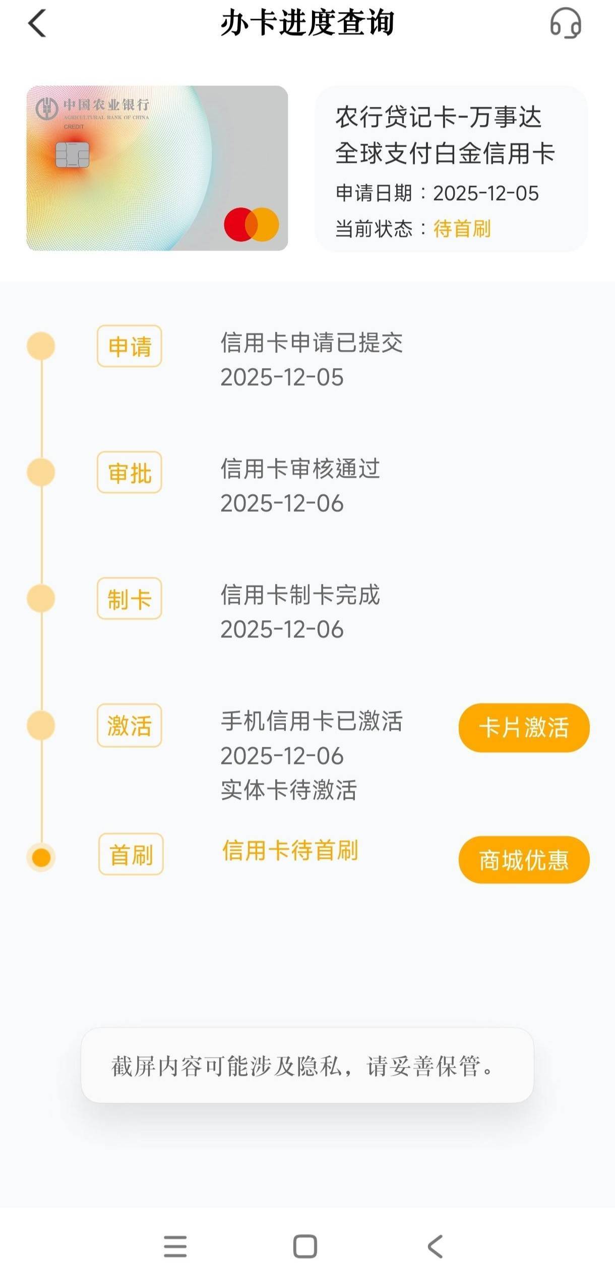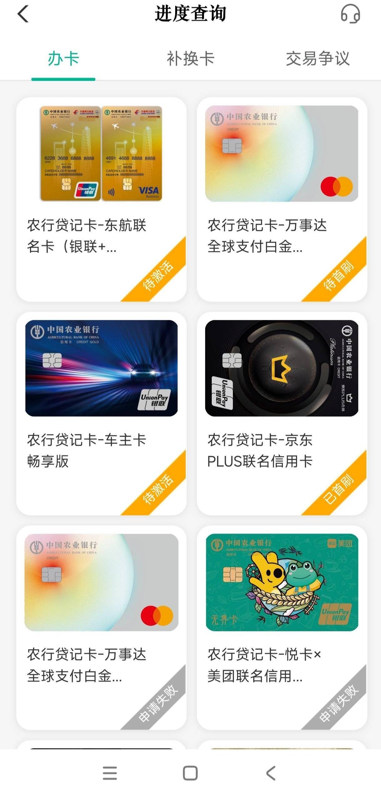 农行下卡了,之前农业银行一年拒绝我二三十次,然后一次性通过四张,可以看一下4号申