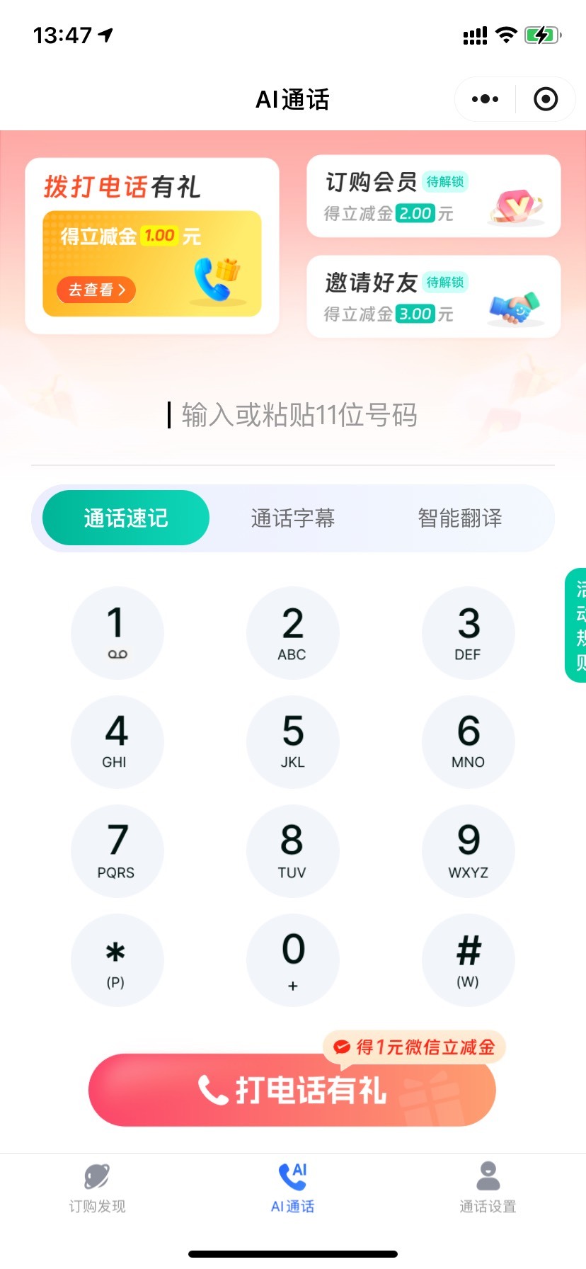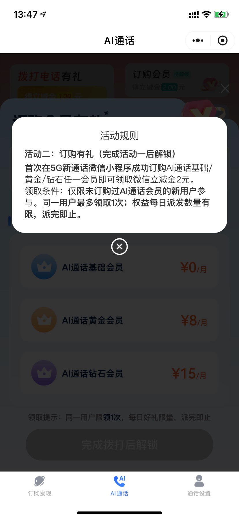 中国移动AI通话拨打电话有礼活动