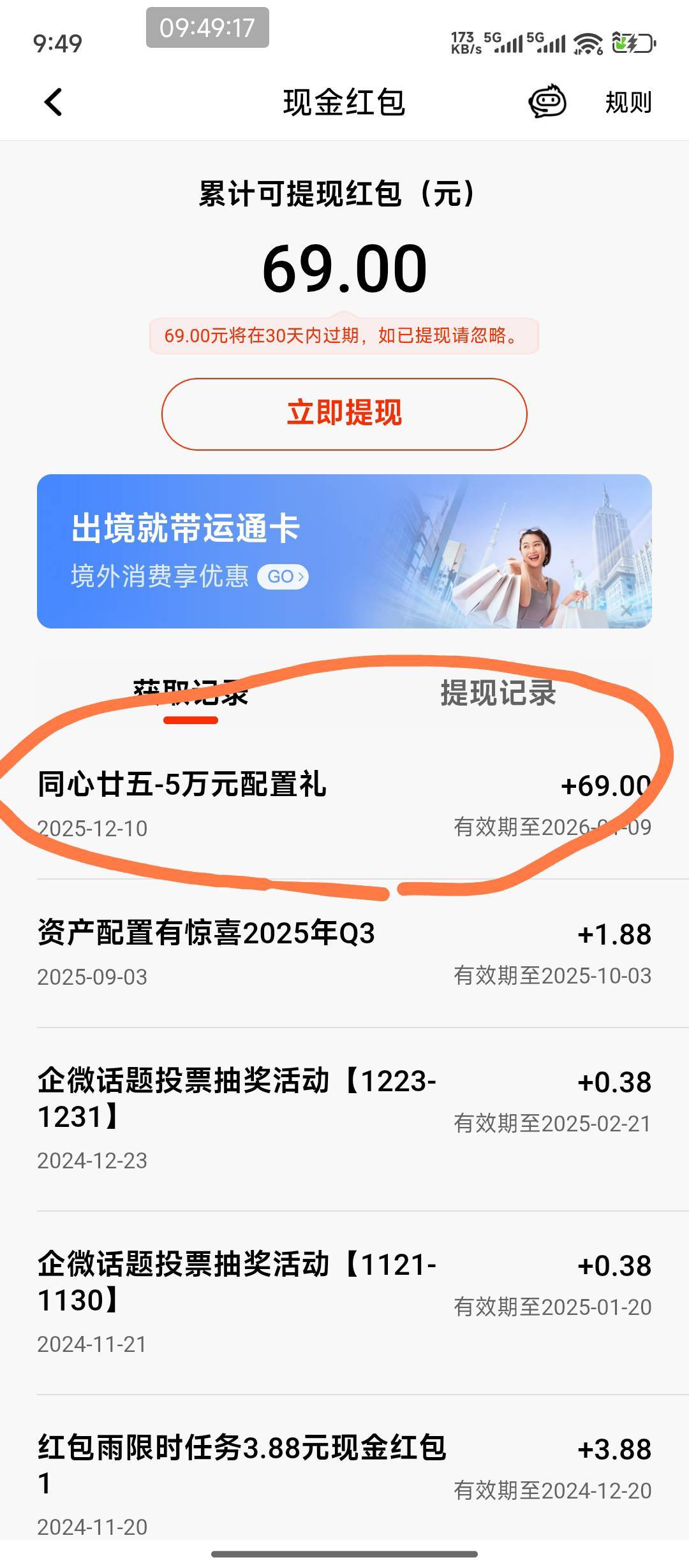 平安十月份达到过月均5w的,竟然能领北京69的,我的卡是深圳的,今天自己最大的毛