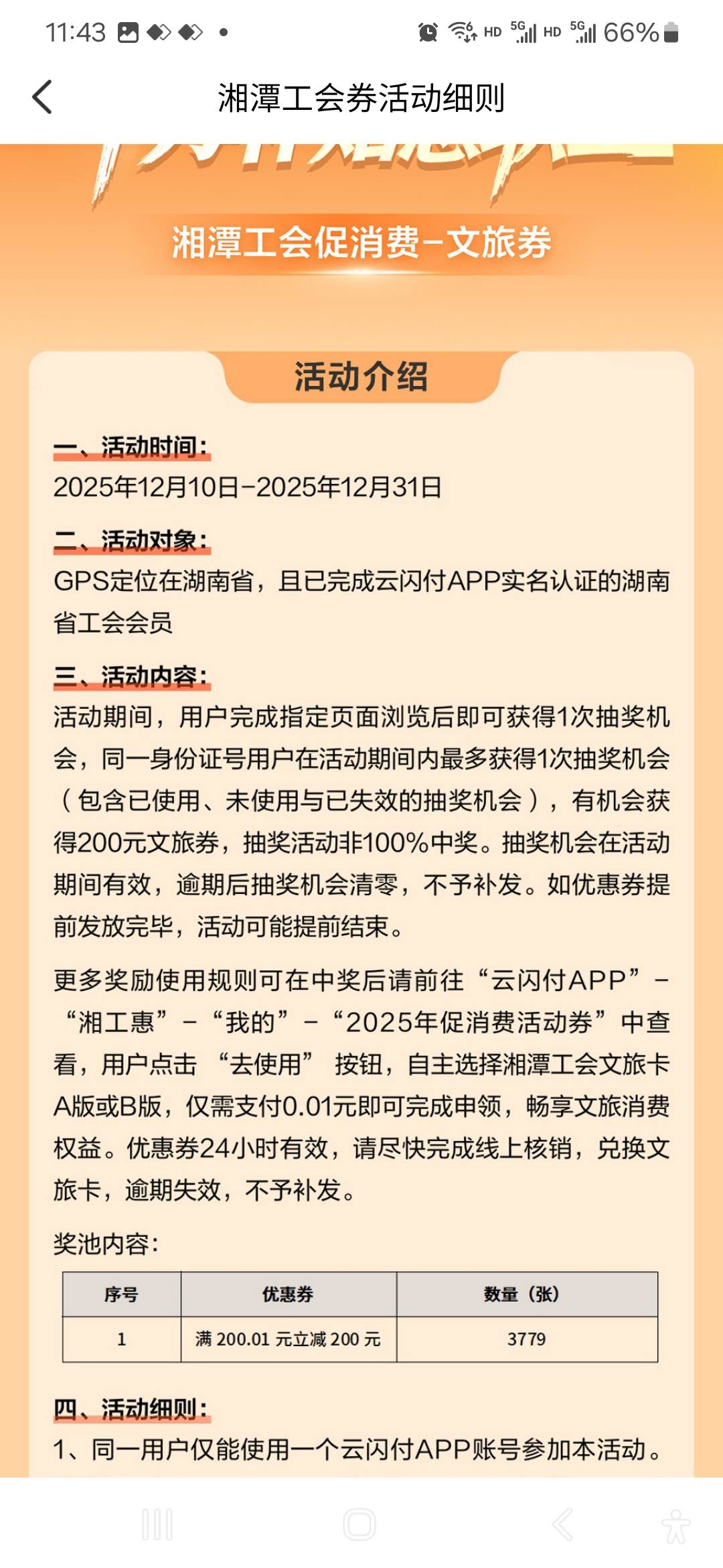 首发,云闪付湖南湘工惠,湘潭活动进去浏览抽奖,加入湖南工会的才能抽
