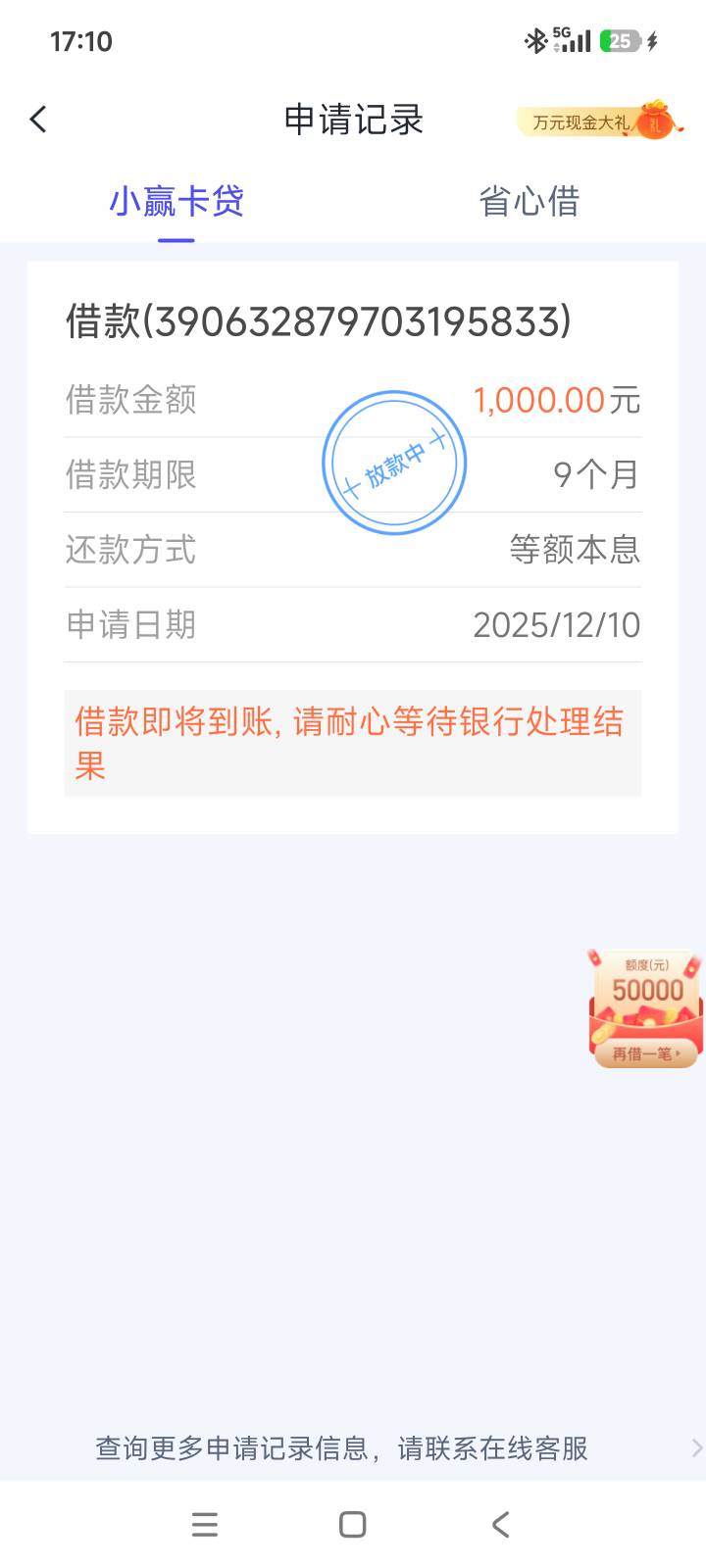 老哥们想卡贷申请了2000,自动改成1000了,放款中,能到吗今天稳不稳?