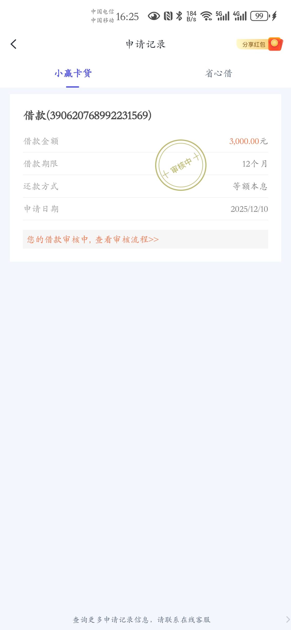 下午申请的!不知道能不能过唉!到现在还在审核中