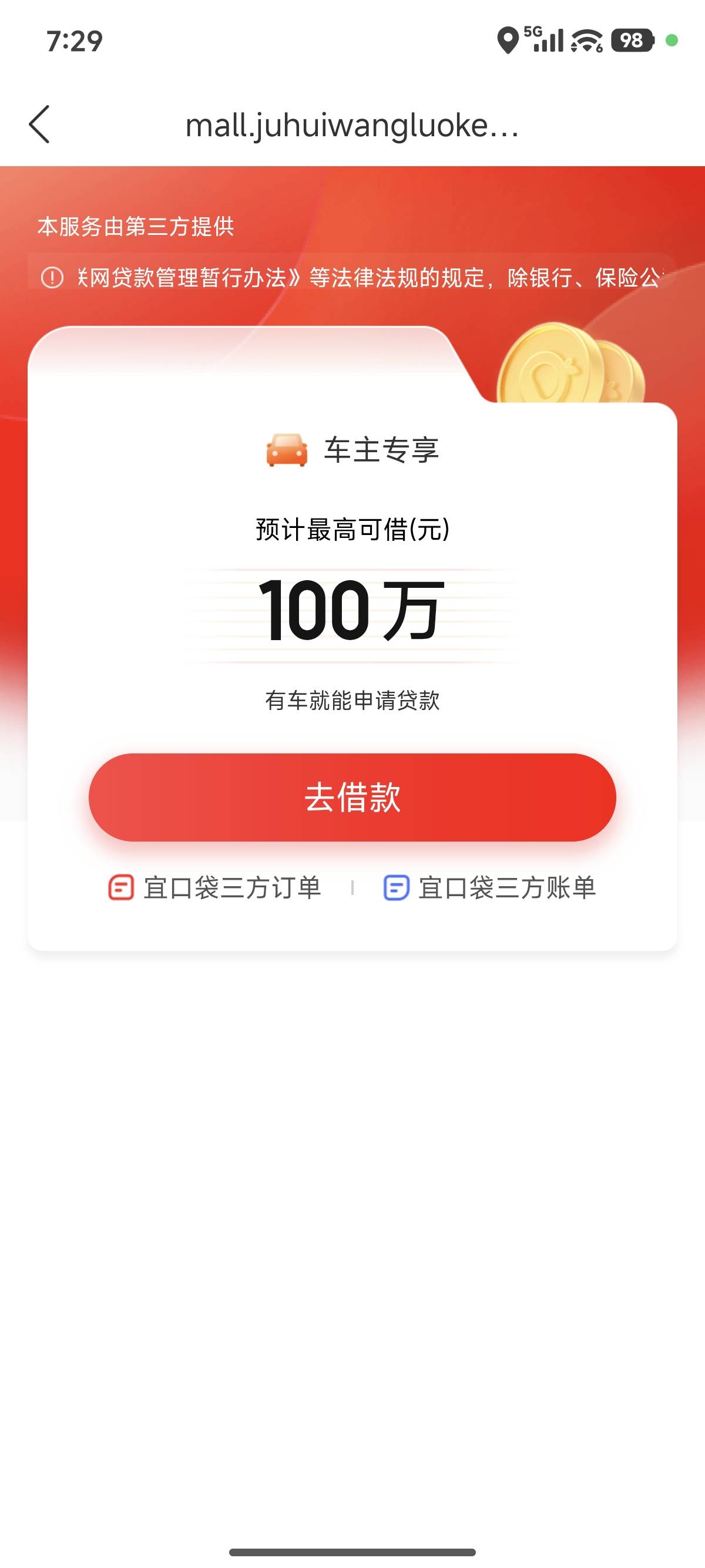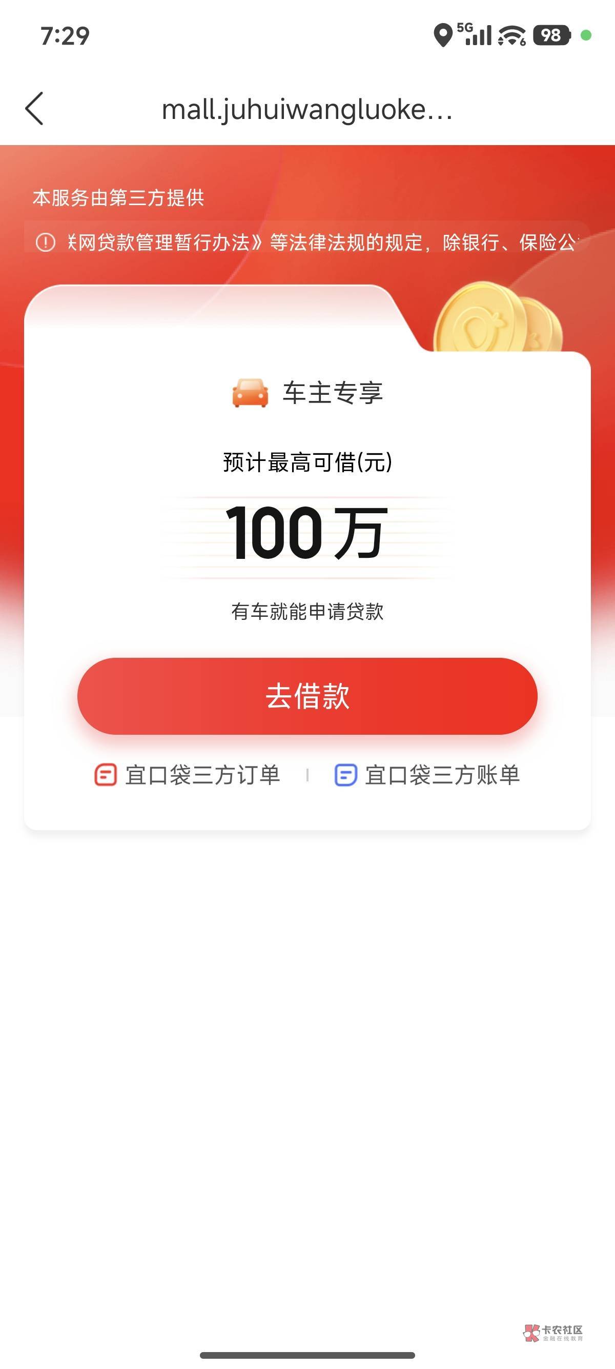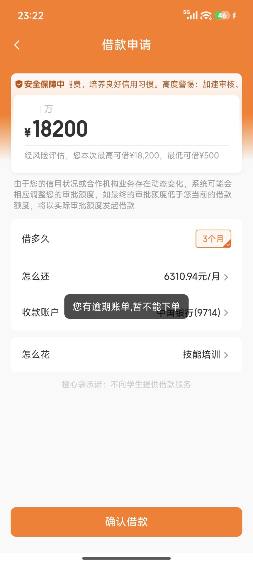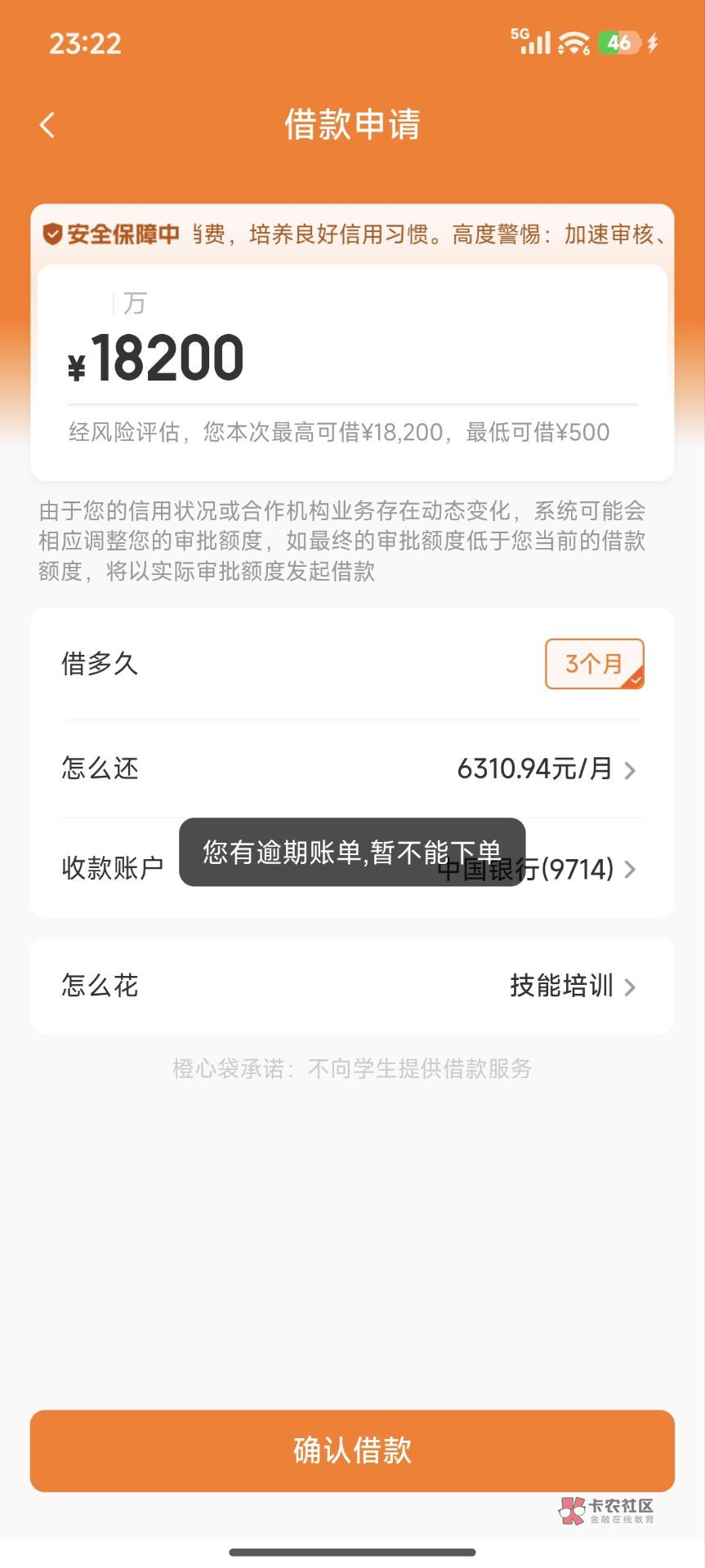 宜口袋逾期100多天,一共下款5万多,宜口袋前面一共借了2万多,就还了2000多  后面就多没还了。总共欠19200左右,前几天看帖子说宜口袋有逾期可以下专项资金,我就下了桔dd去申请,结果显示橙心袋有19200额度,然后点了就马上显示放款中,8号下午申请的,10号凌晨1:30到的,因为我中国YHK设置了每天1000块限额,所以他只扣了900多。我然后取了18200出来,昨晚无聊又打开桔dd一看,突然发现又能申请18200额度,一点又是马上放款中,但是我昨天18200提出来后  就把通联支付快捷给关了,我给搞忘了。结果今天早上一看  放款失败了,现在一进去就是什么车贷100万,然后又下载了橙心袋app,上面显示有18200额度,但是一点申请就说我有逾期账单  不给下。老哥们!这种情况怎么办?我现在已经把通联支付重新绑定YHK了,但是桔dd里没有橙心袋额度了,是不是过几天就会又有了??在橙心袋app里借不出来 只能看不能借。怎么破这个局面??看下面的图
