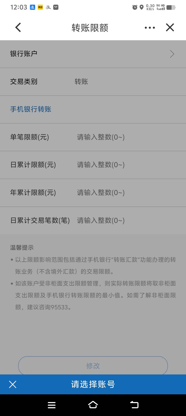 我问一下,这建设银行的怎么设置限额,这看不到账号怎么设置