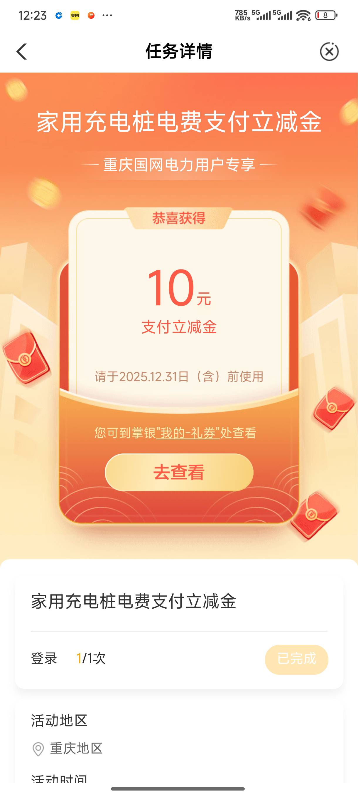 第二个是电网活动,才收到短信就点进去了,抽到10立减