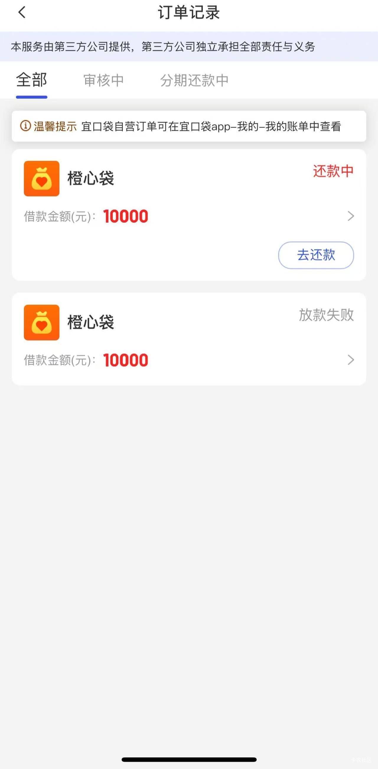 橙心袋十几个小时到账了,本人宜口袋yq好几个月,总的有1w多一点点,11月8号第一次登上去看有个专项额度,1w整,那个时候我没看论坛,直接用了浦发的卡绑定了,后来看了论坛之后马上联系客服取消订单,后来等了两天放款失败后,10号换了农行卡设置好了重新申请,11日凌晨就到账了。设置了500元限额。