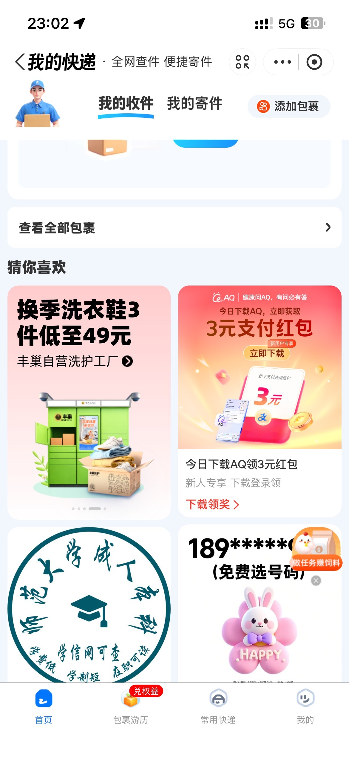 支付宝搜我的快递领3块