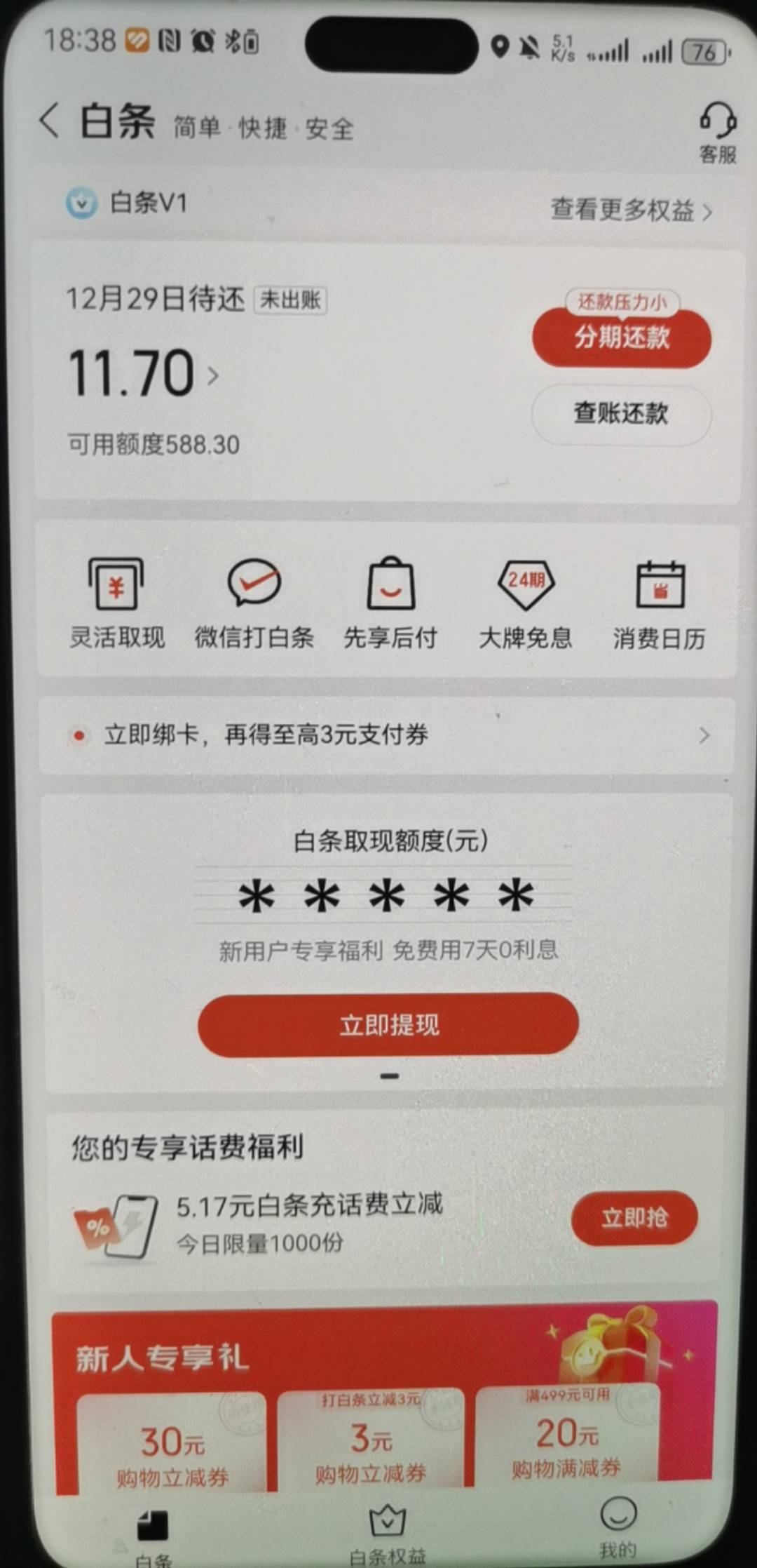 老哥们京东白条还有,我京东六年了,一直开不出白条,不管是以前的注销大F,还是换手机号都没办法开通,然后今天无意中把账号重新删了试一下,没想到直接秒开通600额度,还能取现480,我的资质主页可以看见,非常不好,我都能开通,应该是还有的老哥们