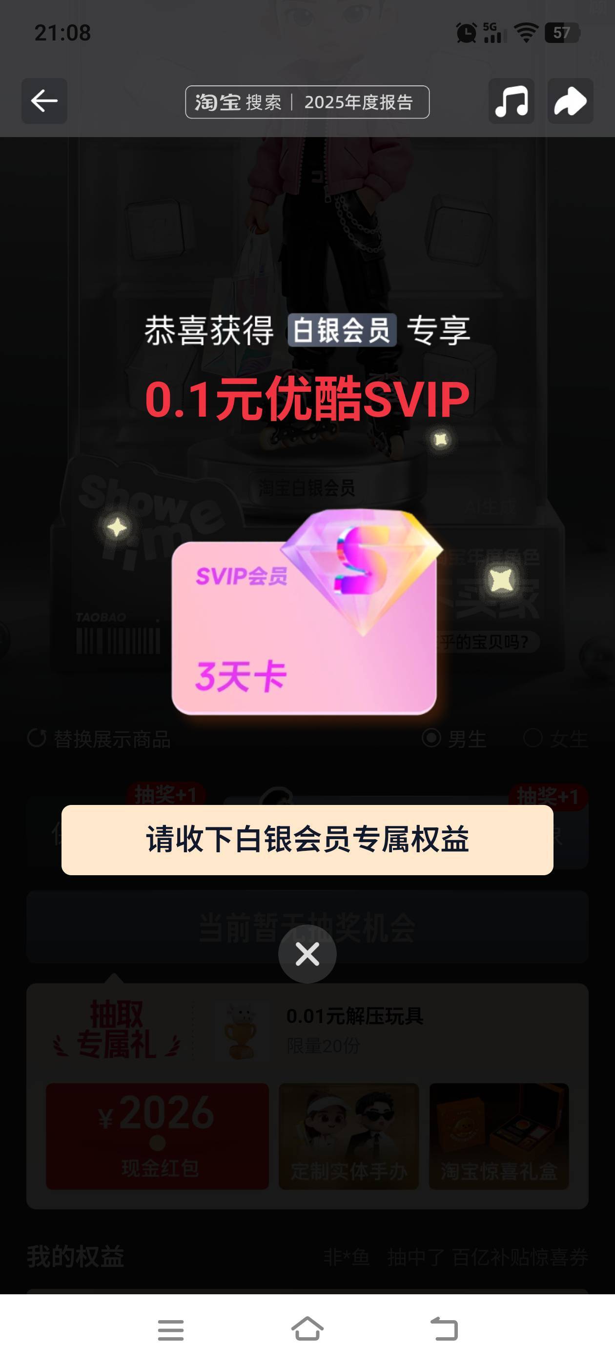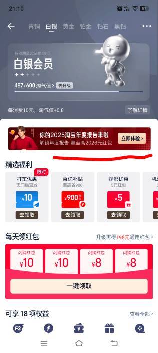 桃宝会员中心 年度报告抽奖。好运的去