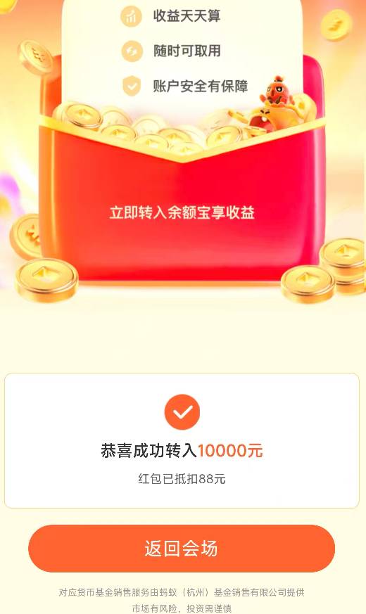 然后抽的时候如果抽到下面这个,我转入10000抵扣了88