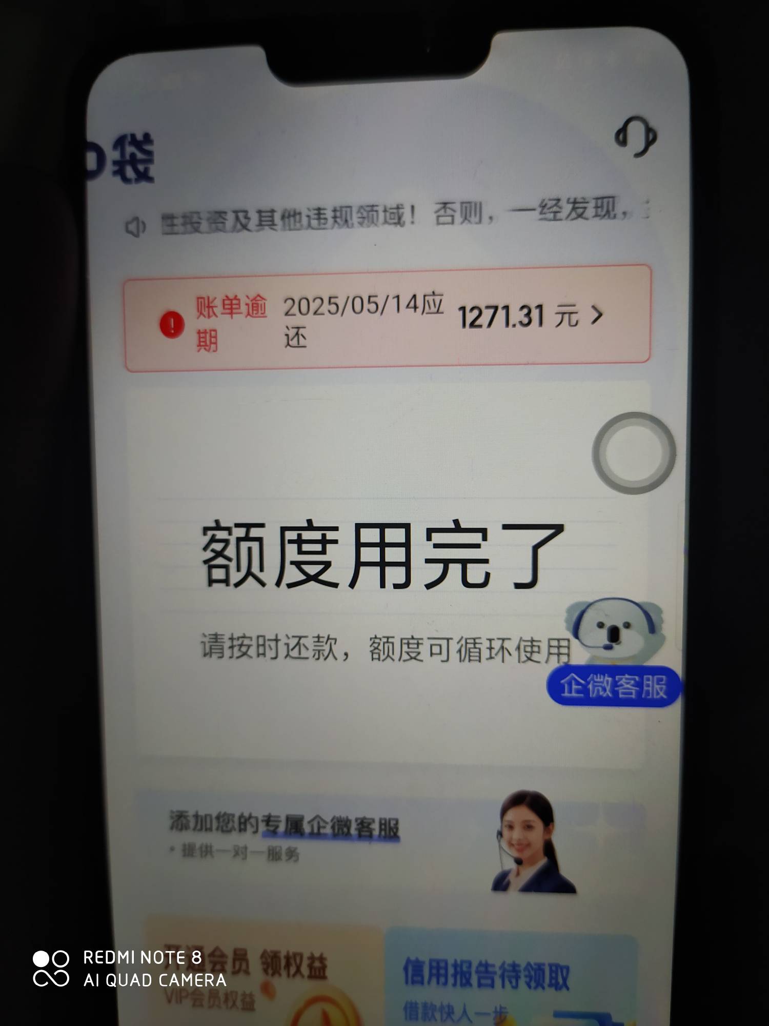 主页原本是放款中。现在变成额度用完了。