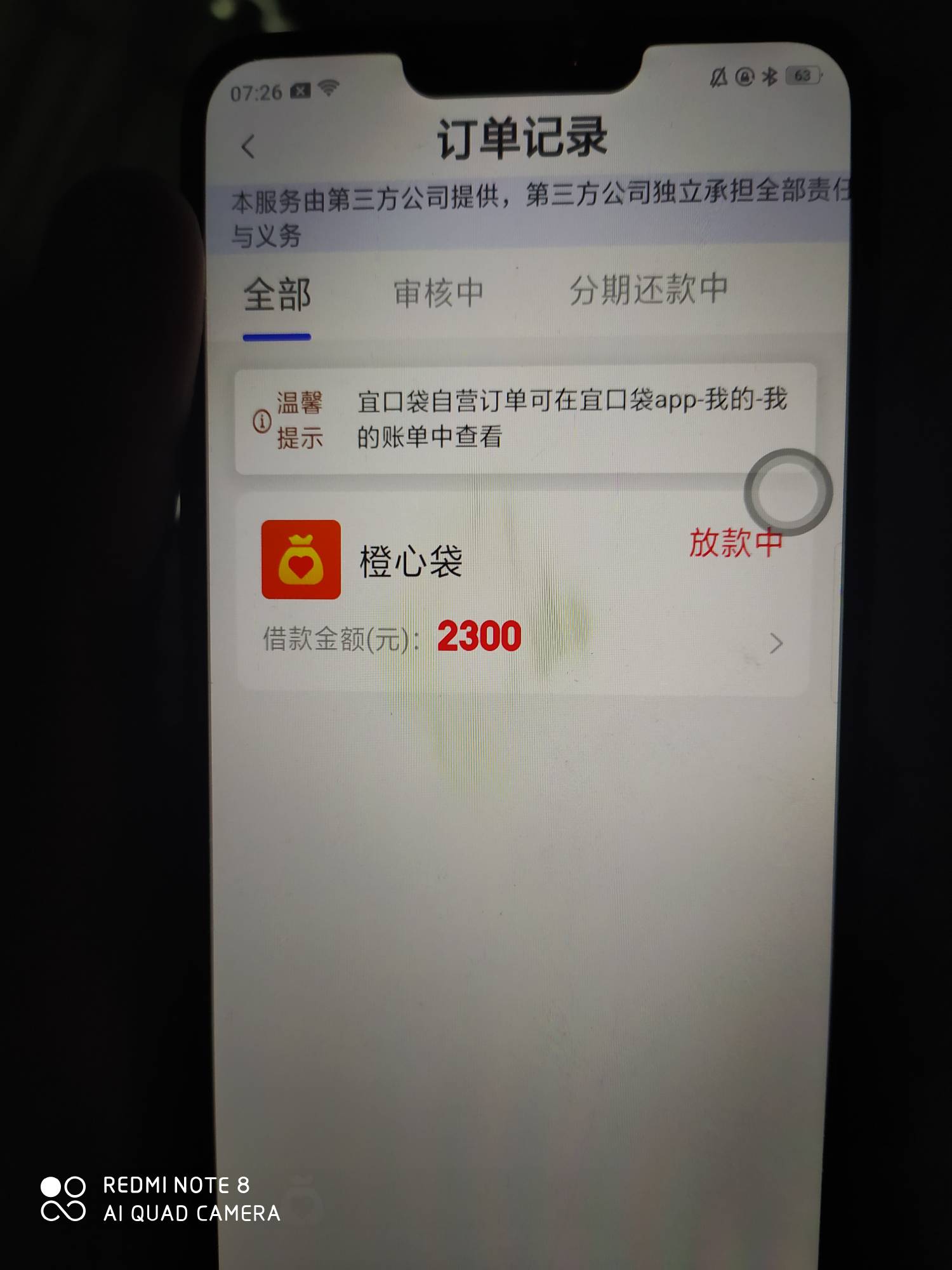四号申请的,原本主页一直都在审核中,今天显示额度用完了,然后第三方订单还是显示放