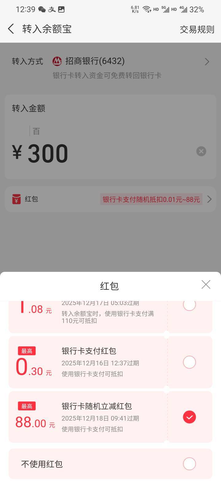 耳机分你一半 发表于 2025-12-15 12:45 我是显示转入随机立减的,也抵扣了88