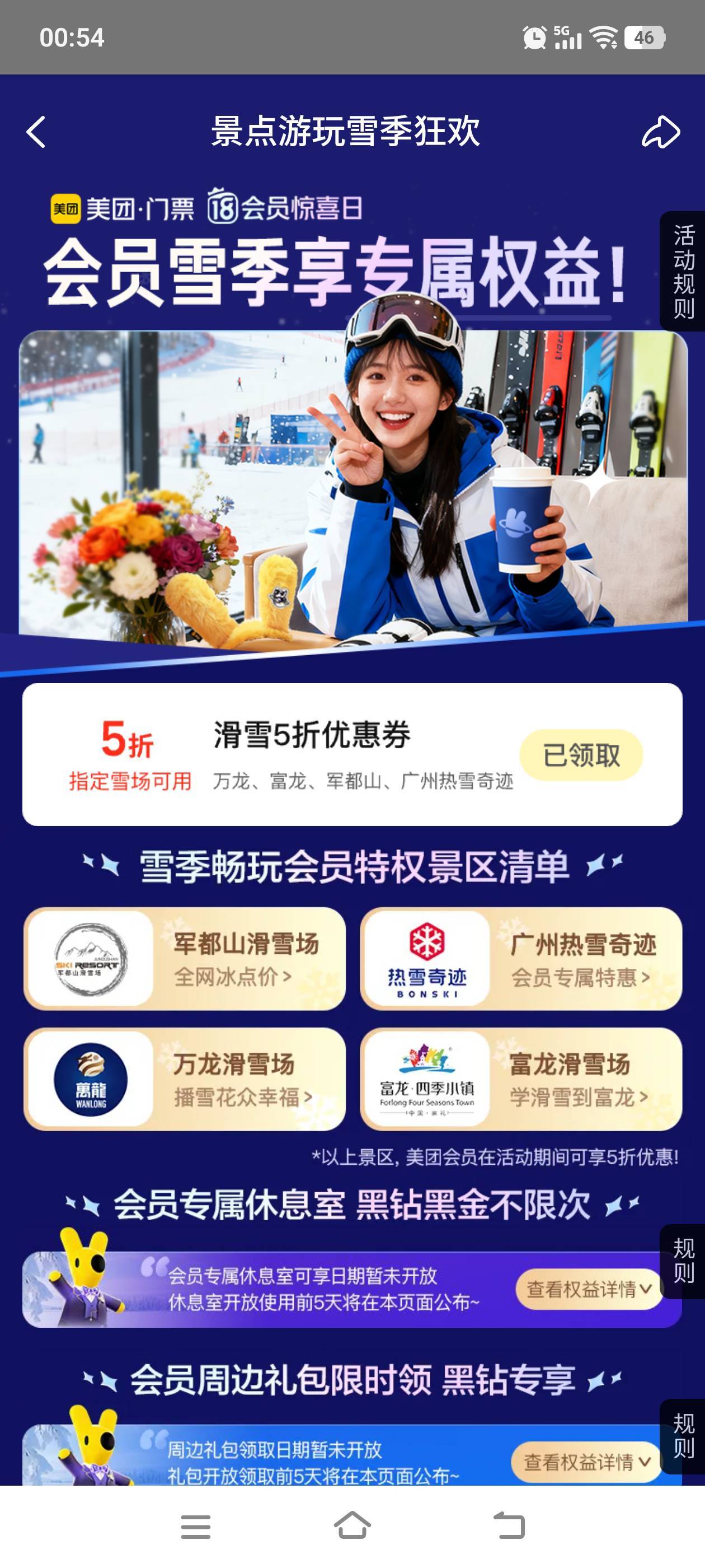 美团5折滑雪 领了防身