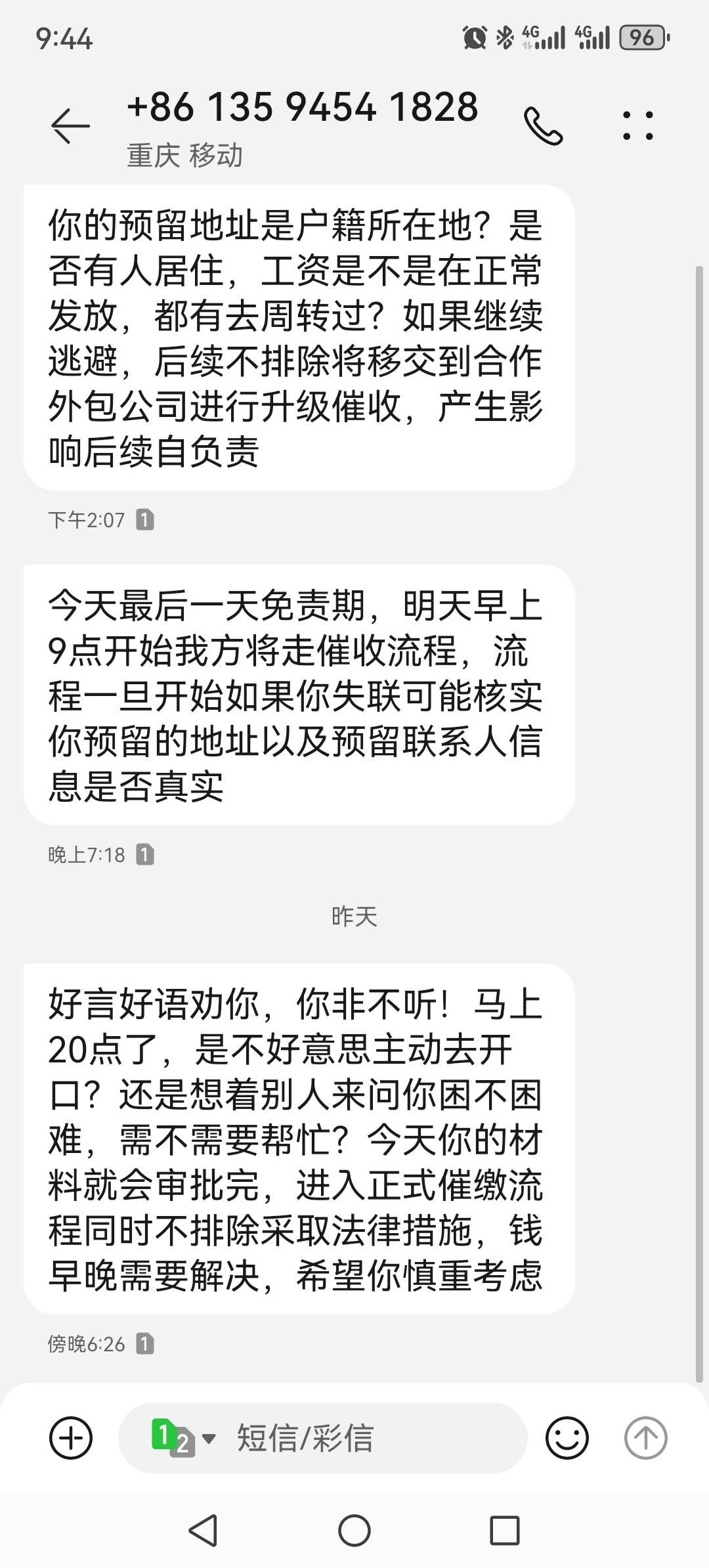weiya 发表于 2025-12-16 09:53 没有,联系人留的小号,说是说要打联系人,每天就是威胁我,还是同一个私人号码,老哥欠多少?我一共用了10万,已经还了7万了,还不动了,正在协商分期或者最低还款,这玩意儿好像只有联系人,没有通讯录