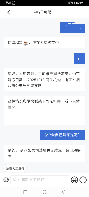 紧急止付了估计,我也遇到过,解释下,如果没在烟台,找你当地派出所签个说明书,就解了