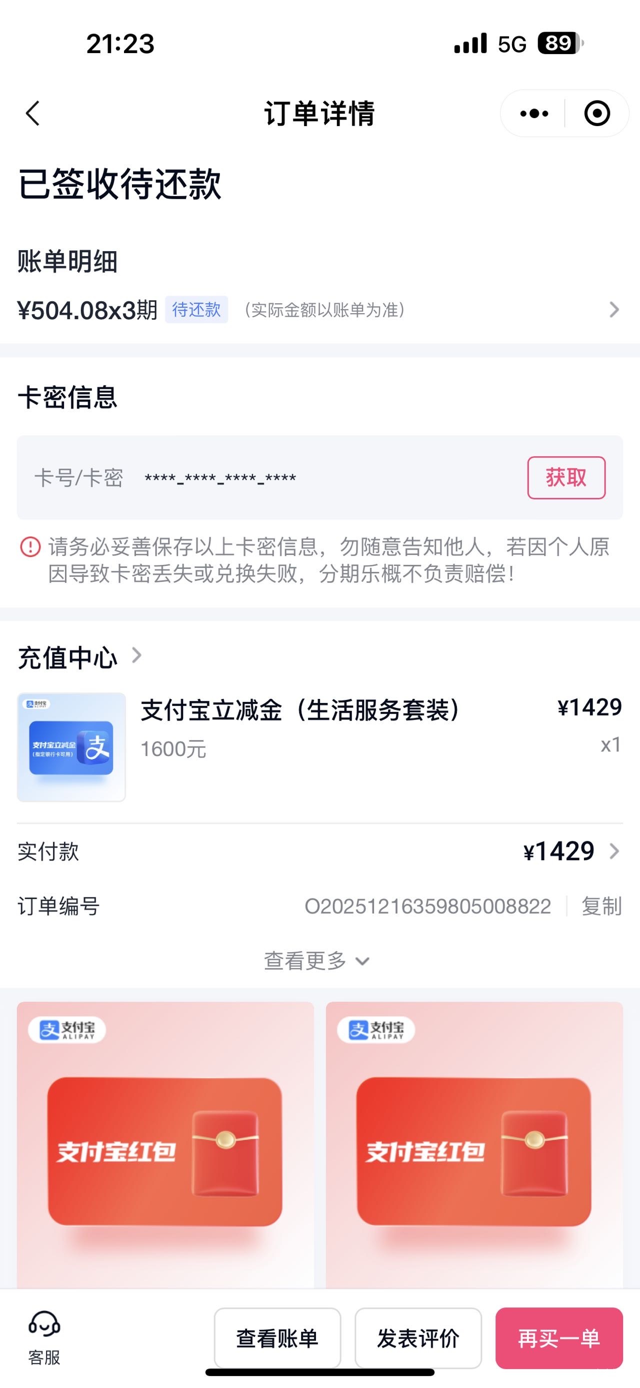 分期乐购物卡成功了!