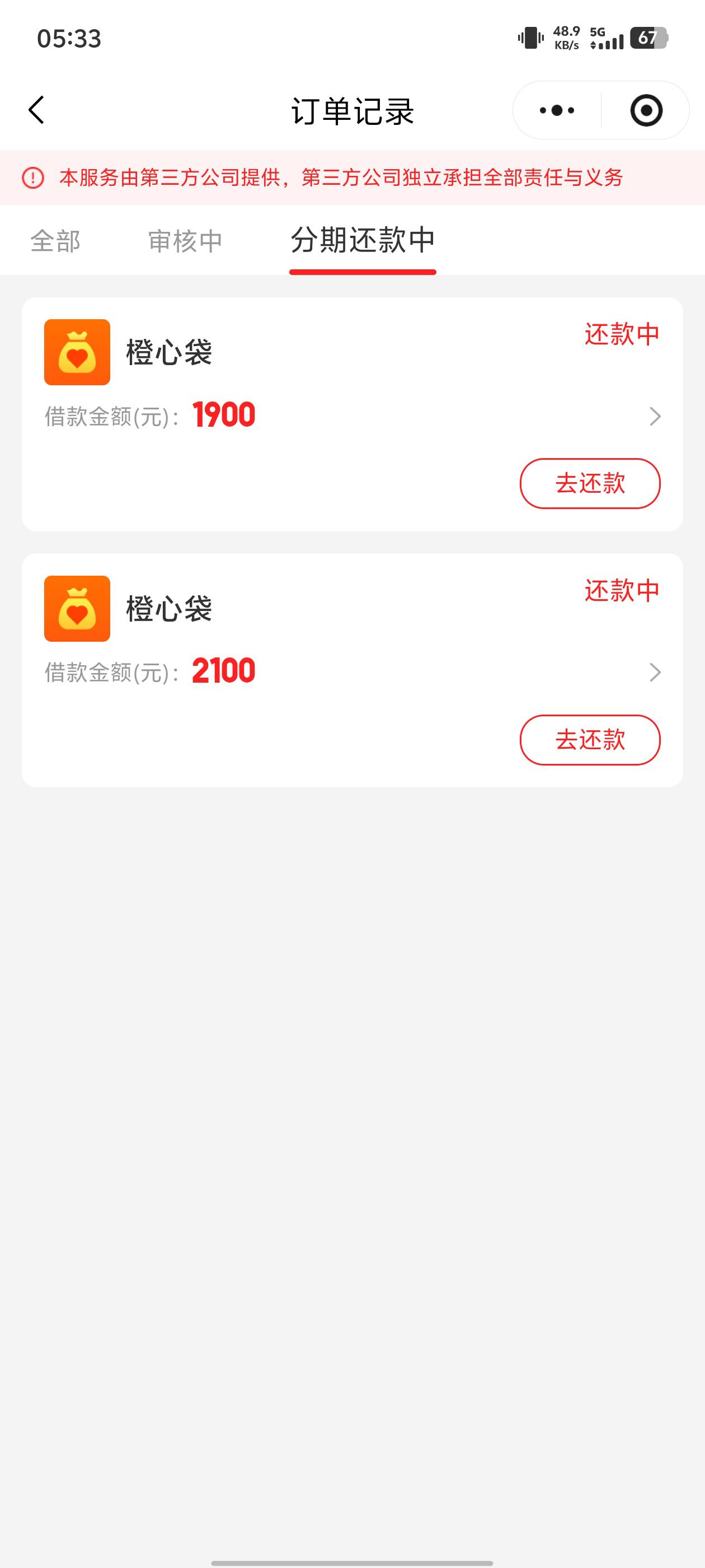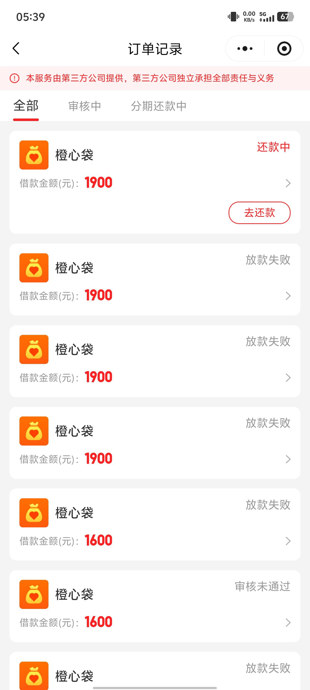 橙心袋第二次下款,还是手速慢了,又扣了,第一次下了2100一分没还,这次下了1900,扣