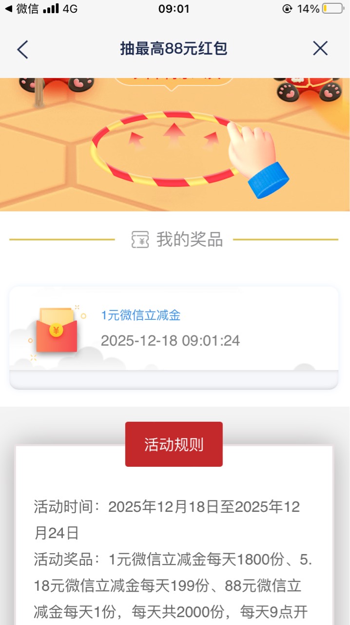 爱谁谁... 发表于 2025-12-18 09:39 集卡完成是抽立减金的呀