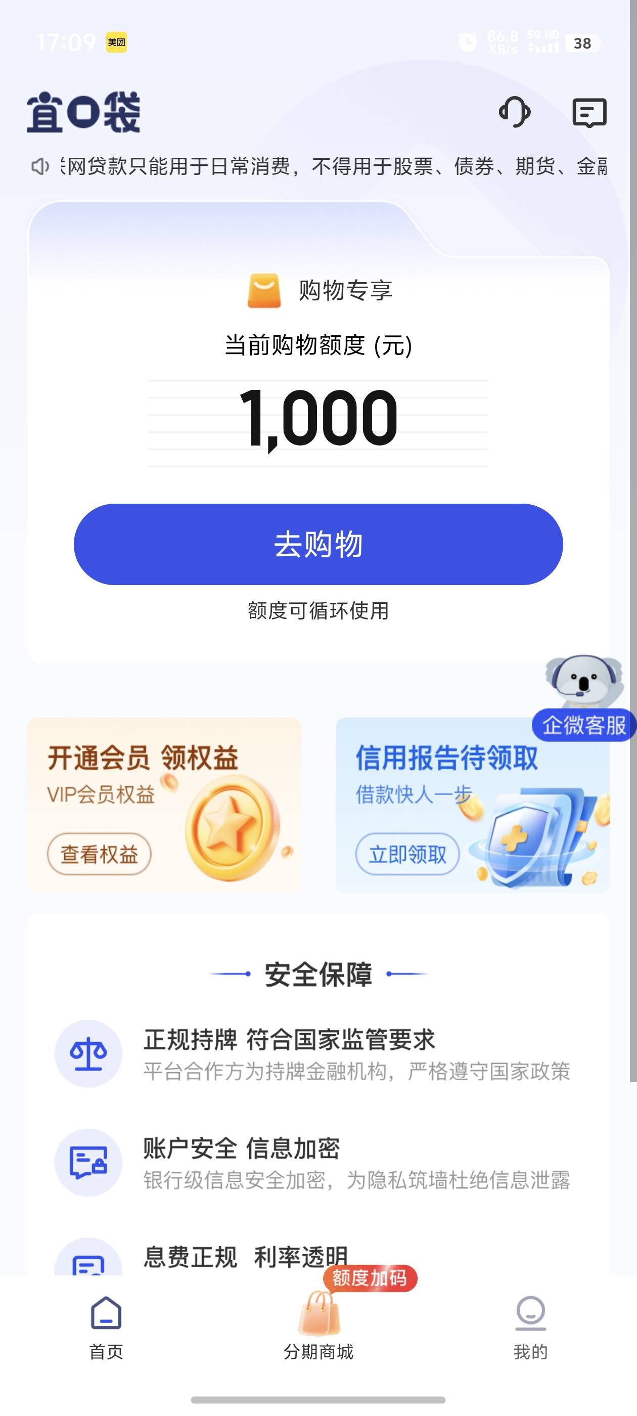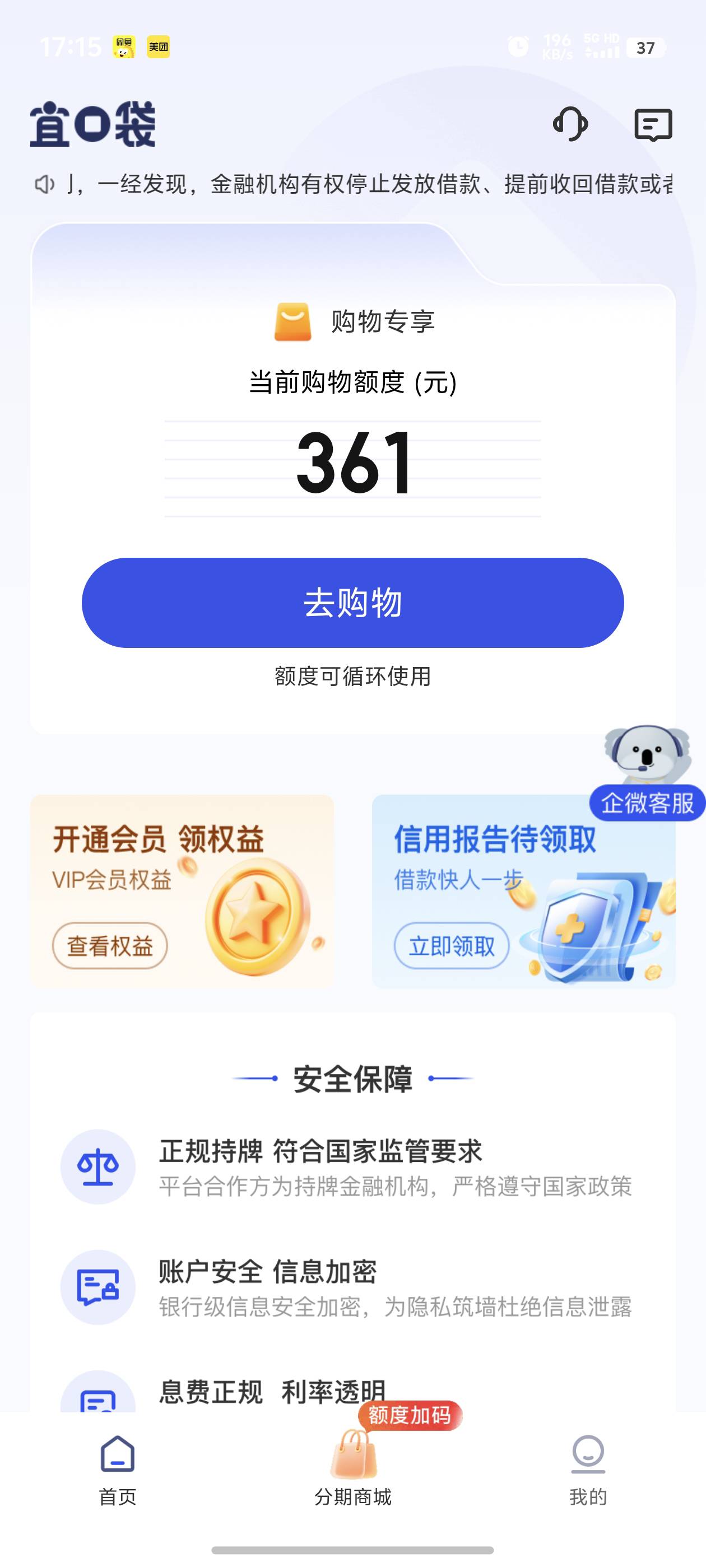 宜口袋万年没额度 出了个购物 这就下了?