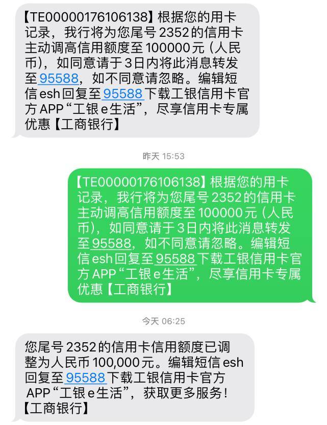 工商银行提升额度了,昨天收到短信主动提升额度91-10K,幅度9K,工行是为了凑个整数吗