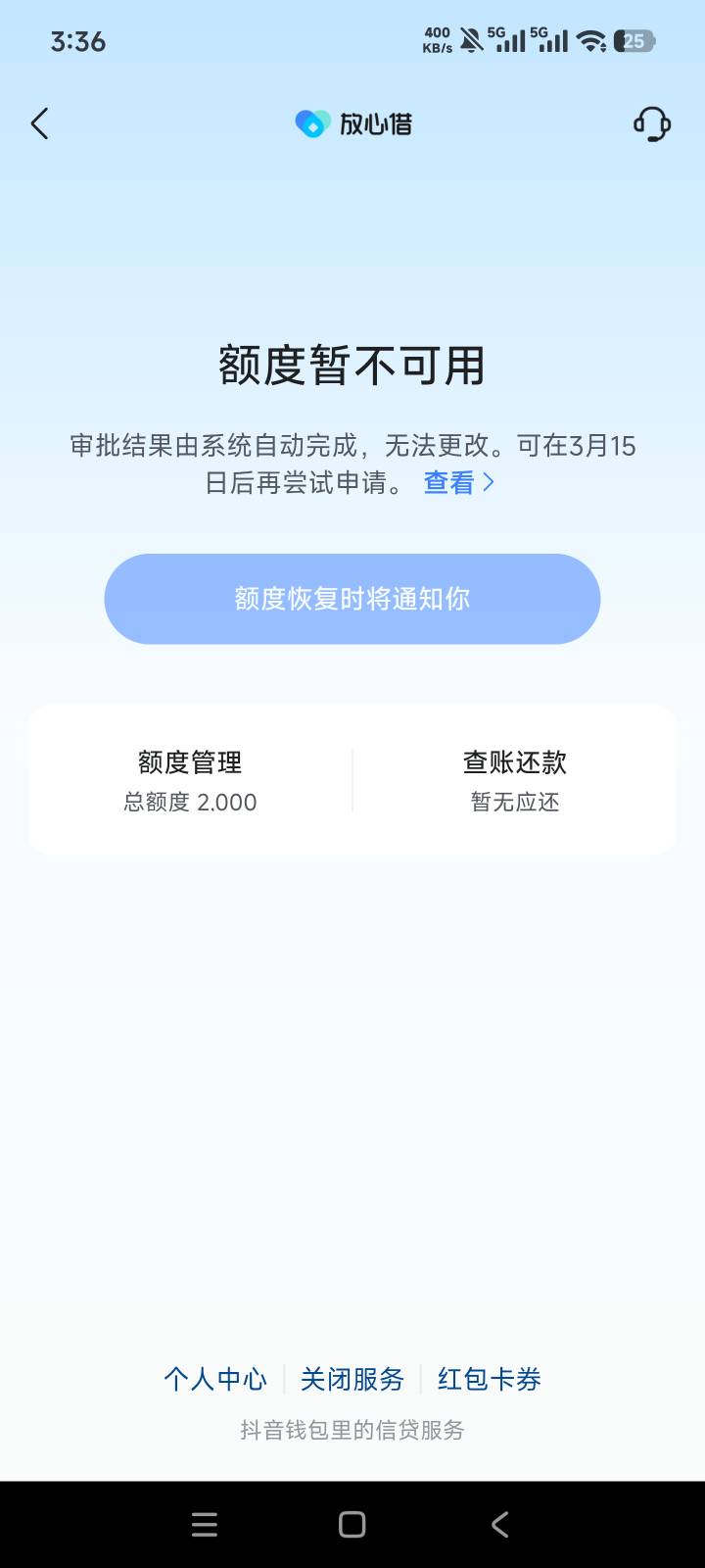 我的提前出黑屋了,不过额度四千变一千。你随时也看一下。