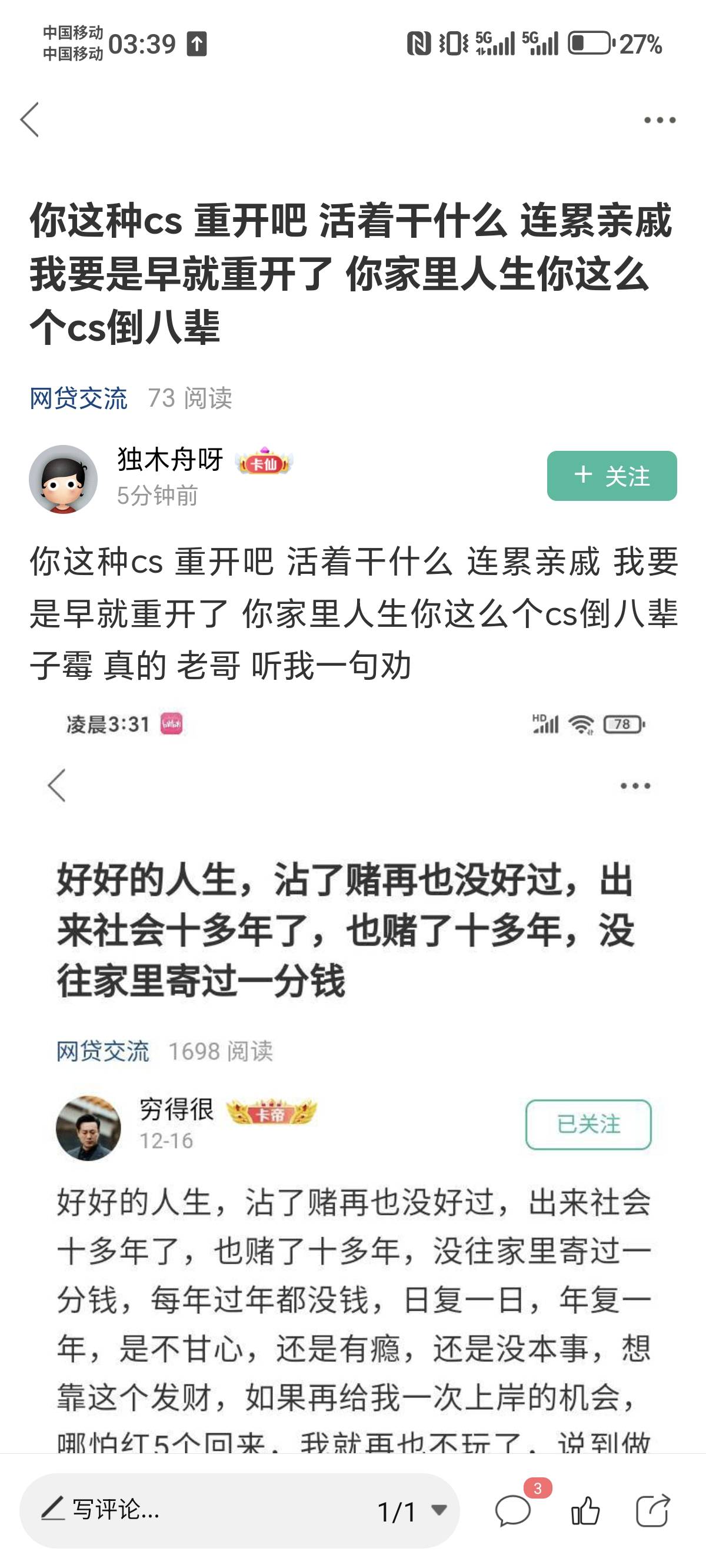 @独木舟呀,你这个杂中,别人只要一下团就去团,我就说了你一句,你还开贴骂我了,刚刚有个老哥说你一句,你也是开贴骂他,给你脸了,人家欠你的
