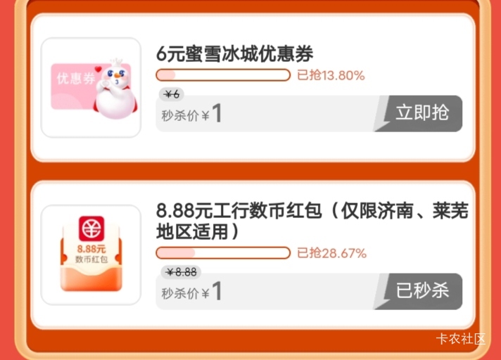 工行app山东悦惠星期五一元购,买8.8数币其他地区也抵扣