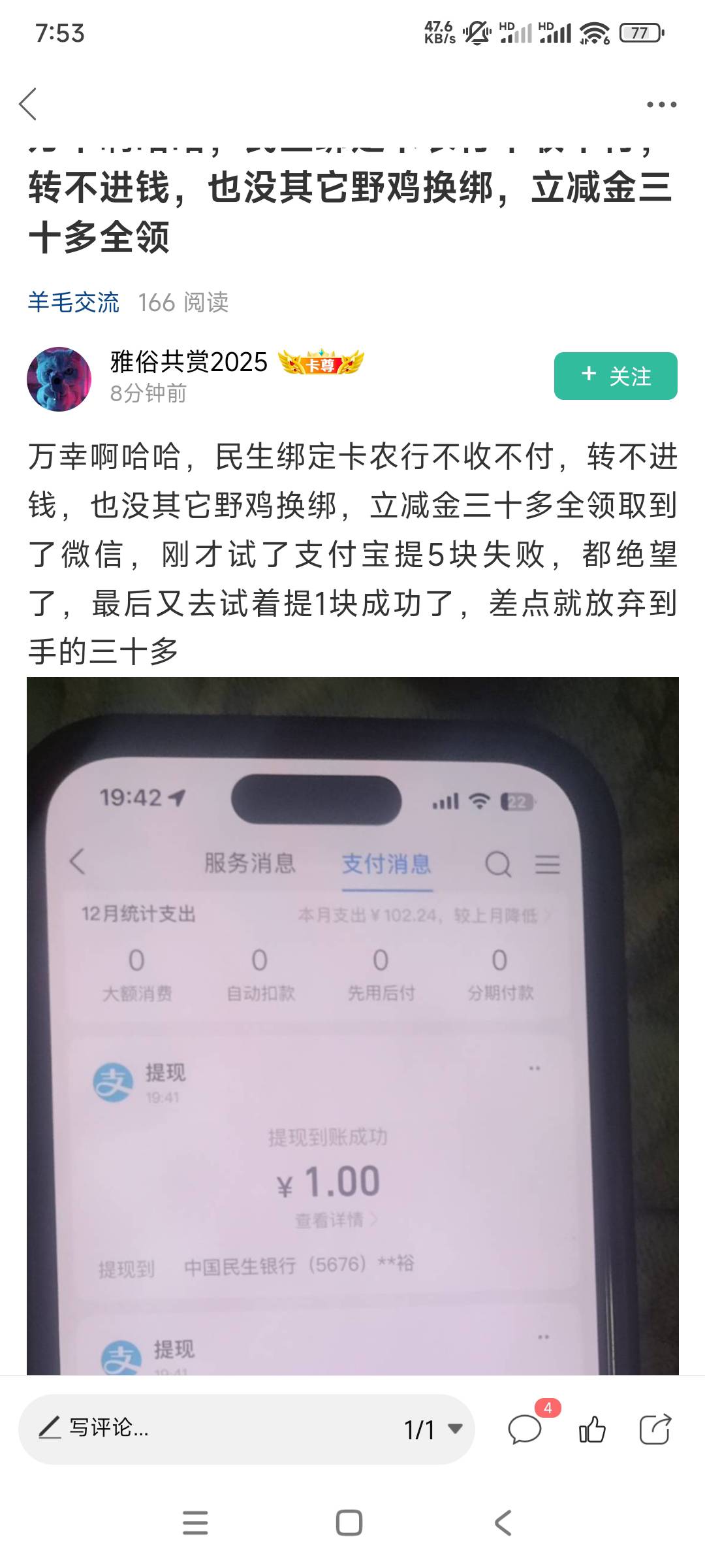 别乱试 微信支付宝提1次够用就行,我就是之前绑定卡非柜 微信提多次民生飞柜了。半夜千万别提