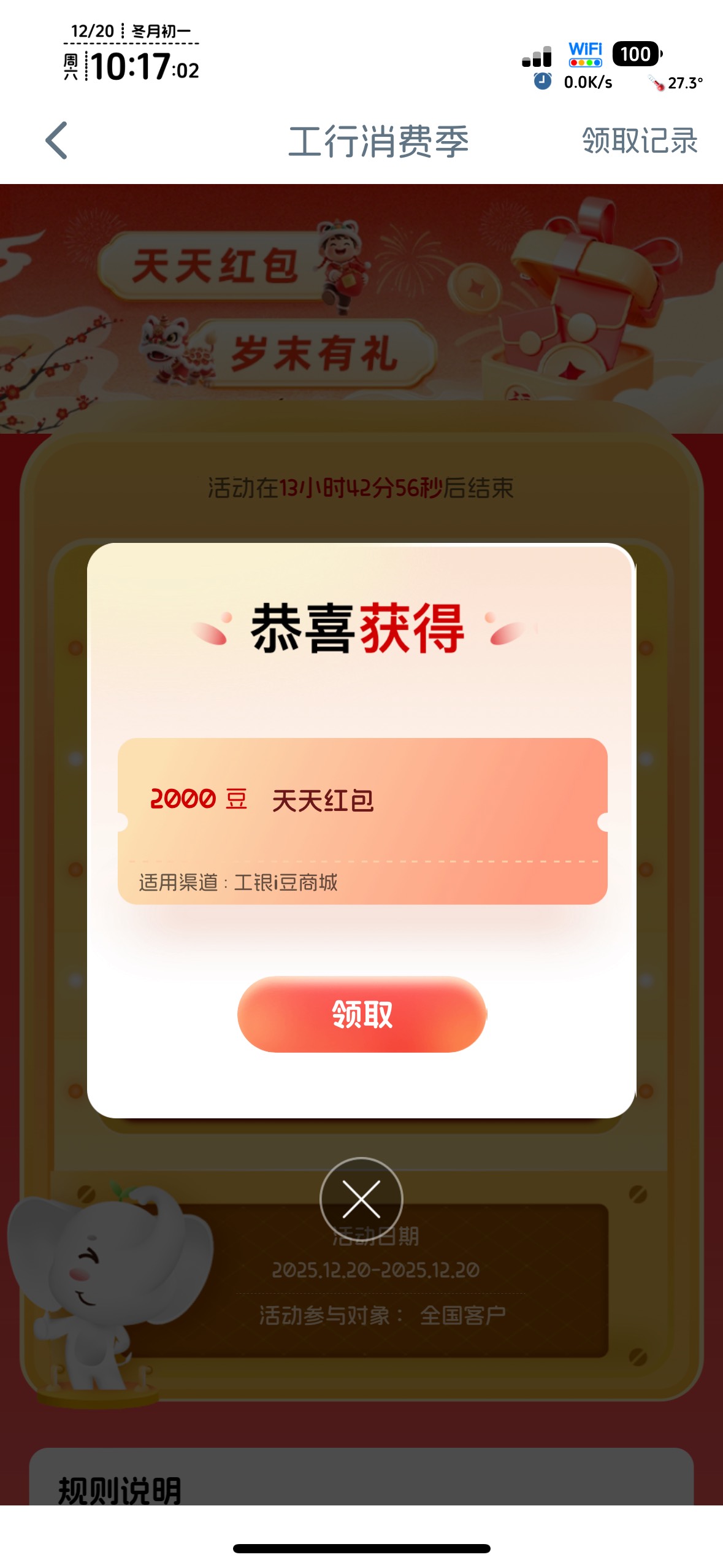 工行消费季天天红包岁末有礼活动