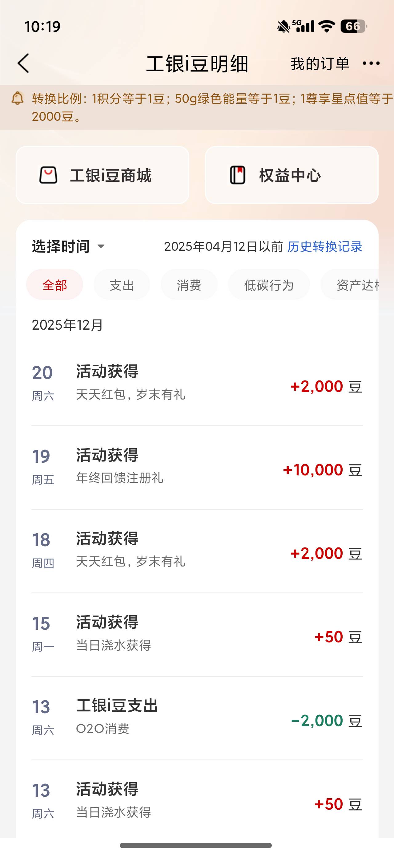 工行送了1个w的豆子