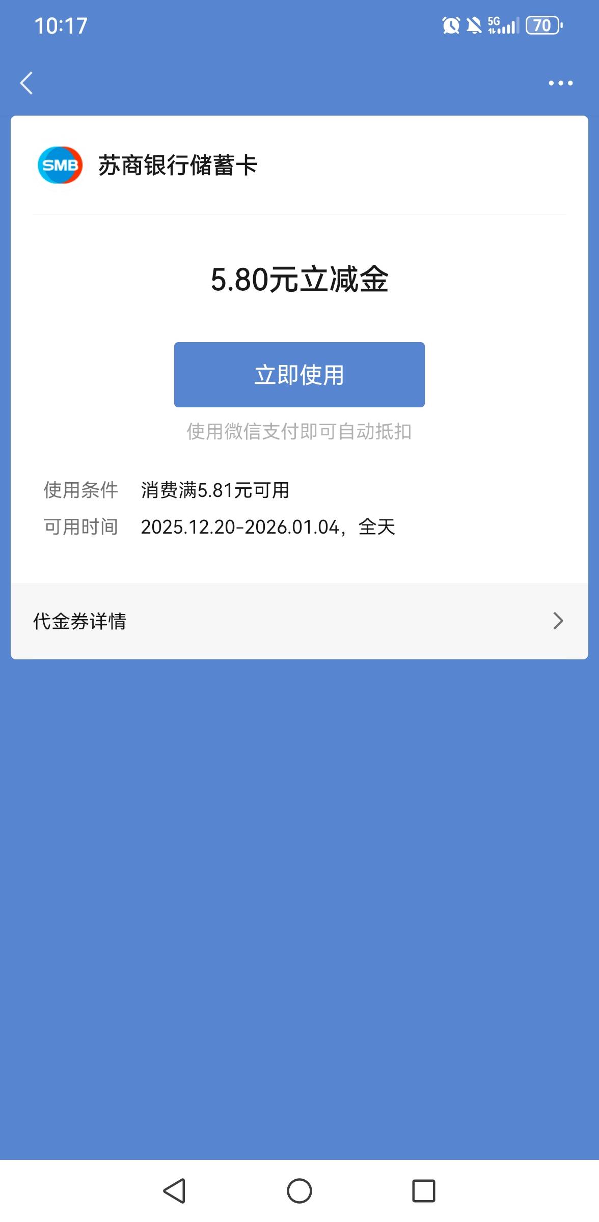 之前苏商银行认证过企业邮箱的老哥都是二星级会员,都可以去会员日领5.8立减金