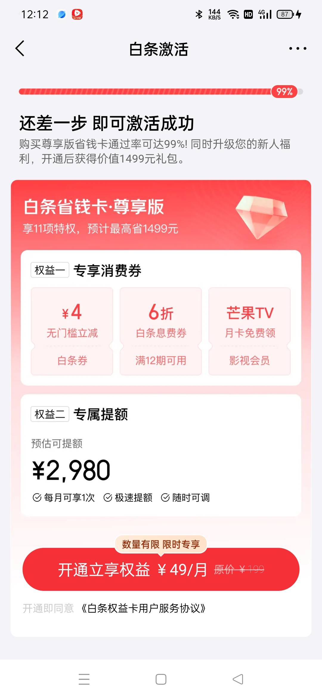 老表们,这个白条开通能出额度吗?有知道的吗?