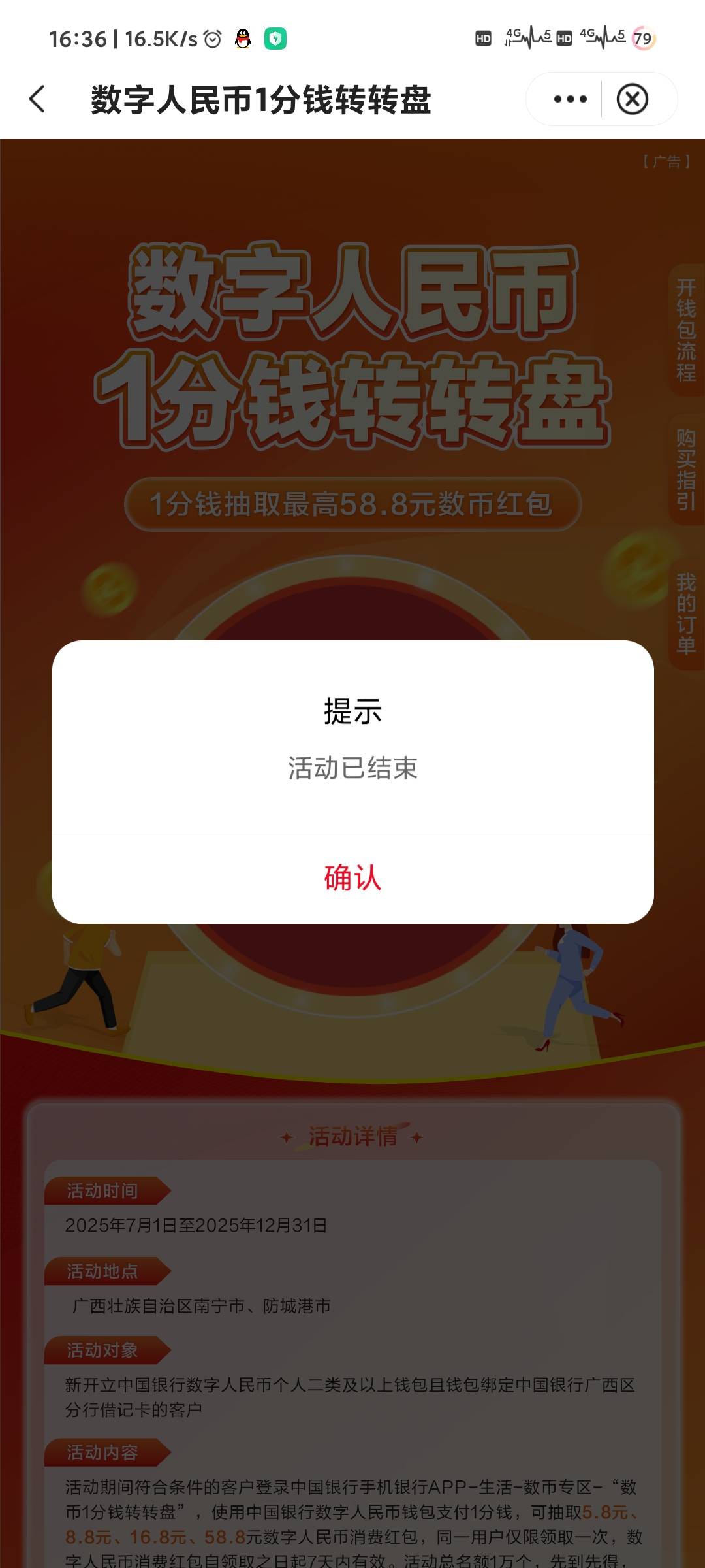 广西中行通用数币活动居然结束了,只剩15话费红包的活动了,叠加-4和陕西-1一共-20,