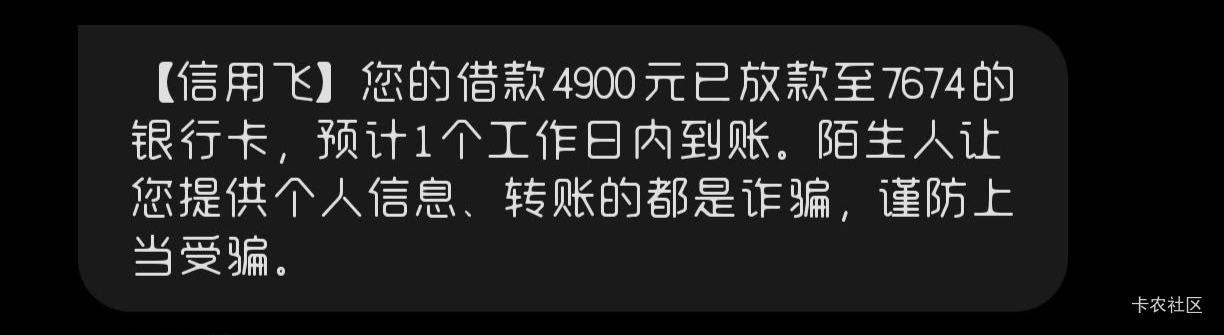 信用飞最后一次下款是3月份,都快还完了,今天突然发现出了提升额度卡三张……买了也没抱希望,结果居然下了。然后又给了2张提升额度卡,又下了!真的是3个月以来唯一的一次下款。